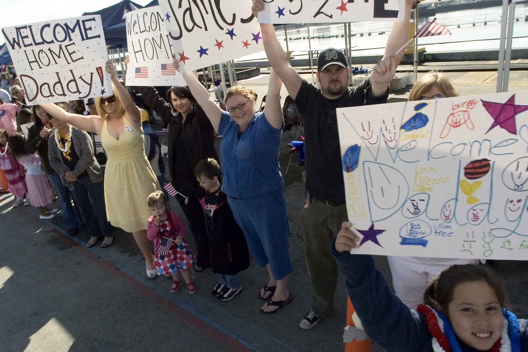 273k | 19 December 2014: Everett, Wash. - Family members of sailors assigned to the Oliver Hazard Perry-class guided-missile frigate Rodney M. Davis hold up