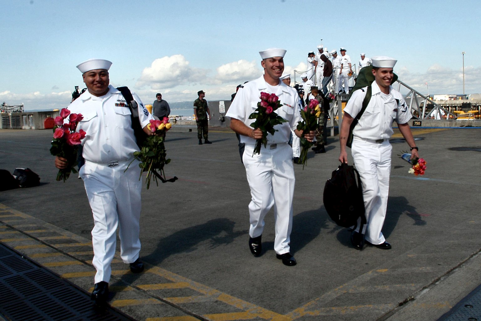 244k | 12 June 2007: Everett, Wash. - Sailors assigned to Rodney M. Davis rush to greet loved ones on the pier during their homecoming celebration. Davis