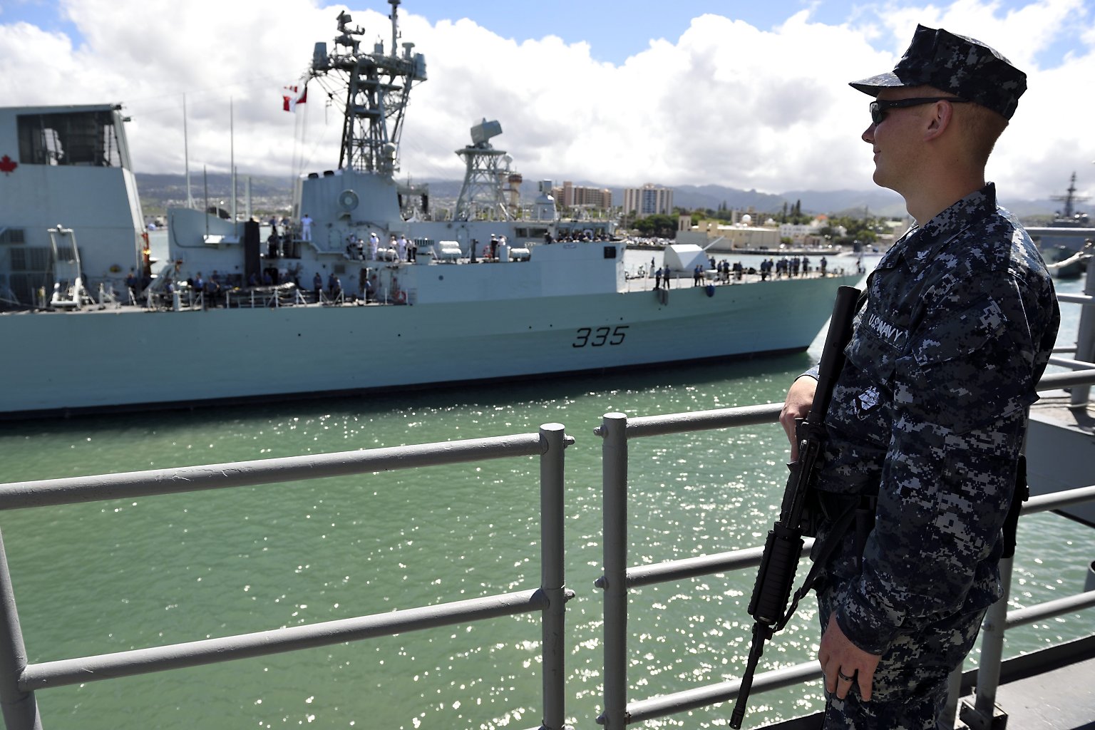 Rodney M. Davis moors in Pearl Harbor. Rodney M. Davis is scheduled to decommission in January 2015, and is making its final journey home after