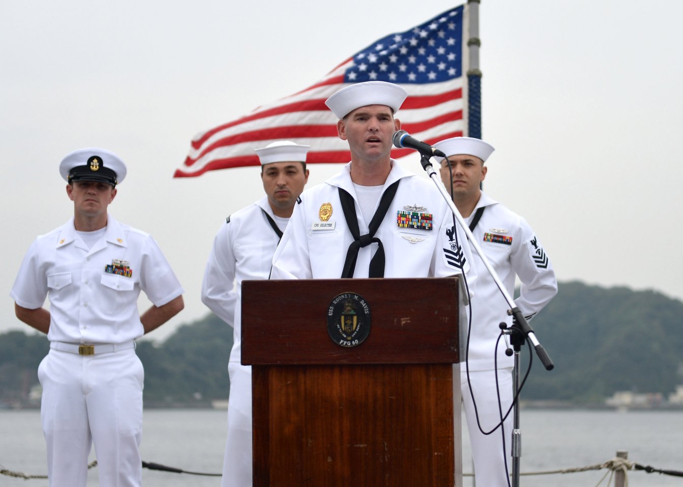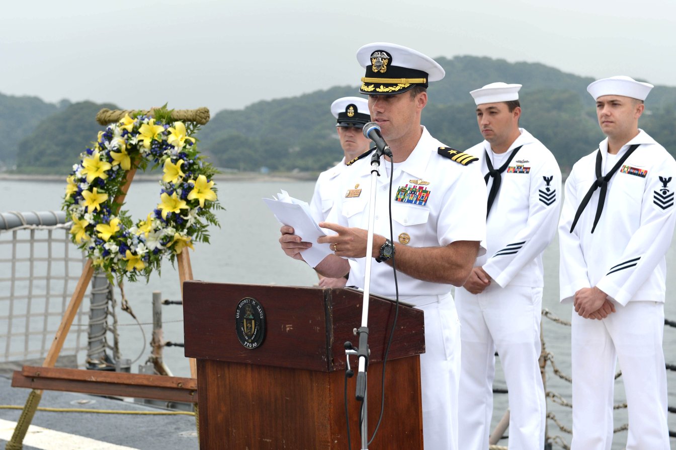 169k | 08 September 2014: Yokosuka, Japan - Cmdr. Todd Whalen, commanding officer of Rodney M. Davis, addresses sailors during a ceremony in honor of Sgt. Rodney M. Davis. (U.S. Navy photo #140908-N-TW634-153 by MC3 Derek A. Harkins from the Navy News Stand) | ||
