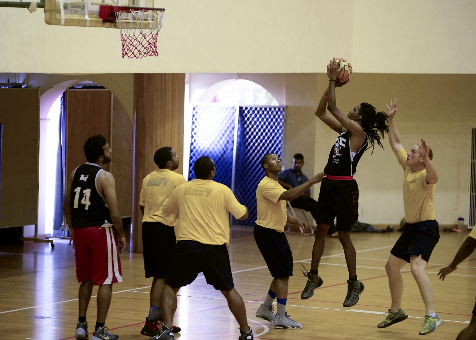 231k | 06 October 2014: Male, Republic of the Maldives - Sailors from Rodney M. Davis play basketball with the Maldives National Defense Force basketball team. (U.S. Navy photo #141006-N-TW634-327 by MC3 Derek A. Harkins from the Navy News Stand) | ||