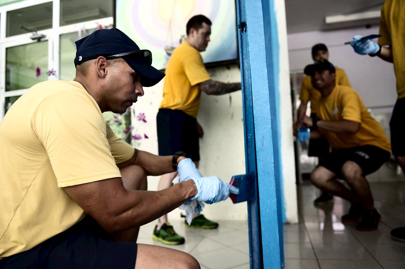 151k | 08 October 2014: Male, Republic of the Maldives - Command Senior Chief Raymond Alvarez, from Everett, Wash., paints walls at an orphanage in Male, Maldives, with fellow