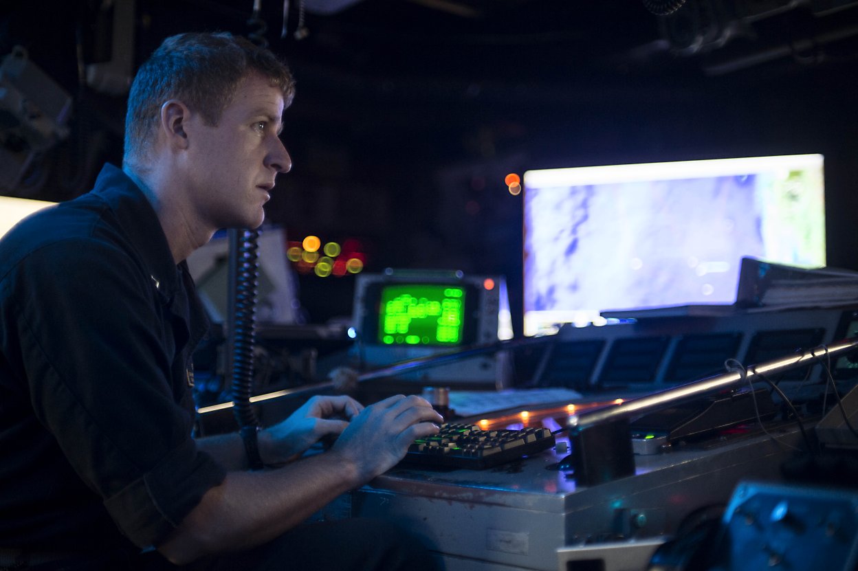 98k | 18 September 2014: Sulu Sea - Operations Specialist 2nd Class Douglas Butts, from Magna, Utah, stands an anti-submarine tactical air controller watch in the combat information