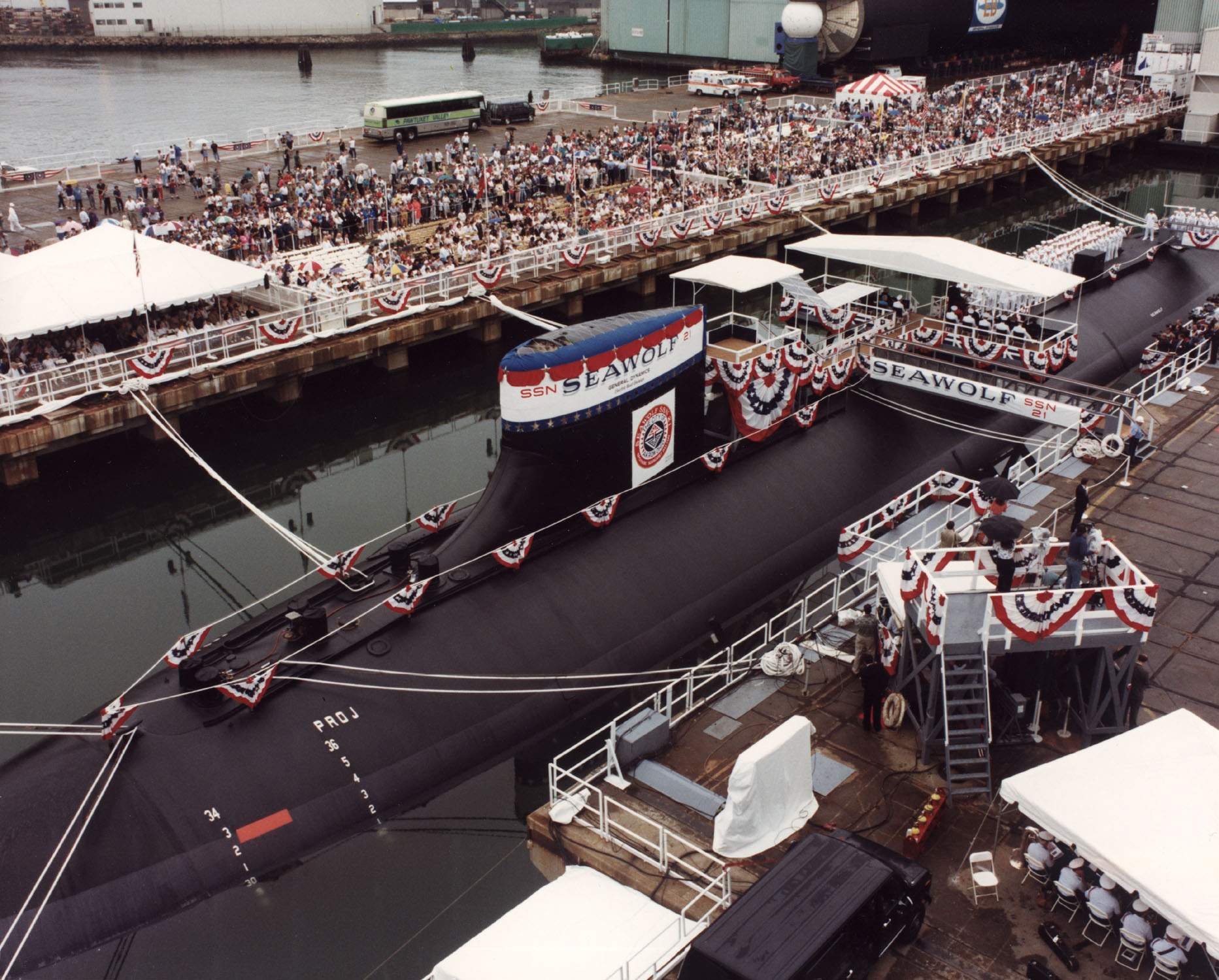 354k | Seawolf (SSN-21), commissioning ceremony, 19 July 1997 at the Electric Boat Division of General Dynamics Corp, Groton, CT. | USN photo courtesy of Federation of American Scientists | |