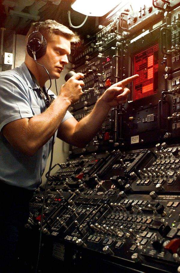 62k | Yeoman 2nd Class Gallentine (L), Master Chief Electronics Technician David Minnich (center), and Electronics Technician Hal Crimm (R) make up the helm control team on watch aboard the nuclear powered submarine Seawolf (SSN-21). | USN photo # N-6483G-023 by Chief Photographer's Mate John E. Gay, courtesy of news.navy.mil.& submitted by Bill Gonyo. | |