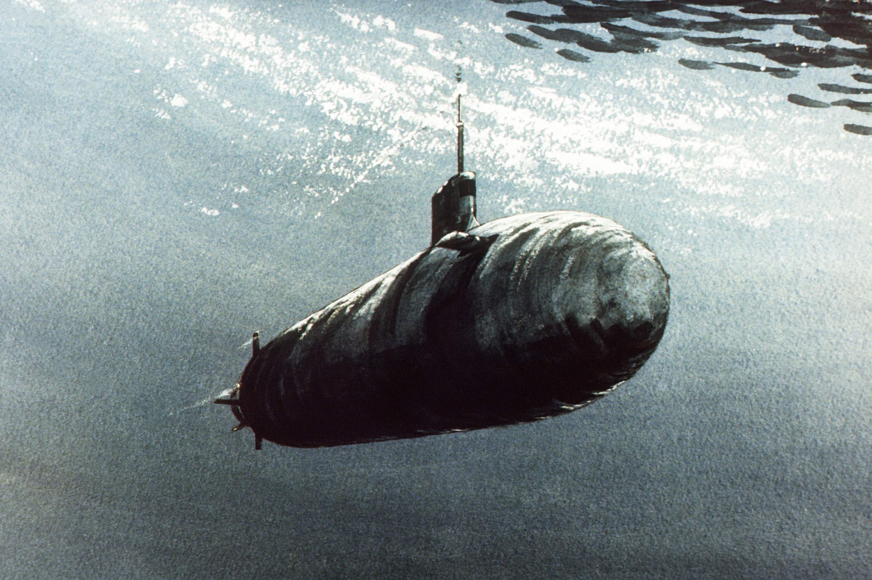 636k | Artist's conception of the Seawolf (SSN-21) firing a torpedo. Note the triple flank-array sonars, forward hydroplanes and midships position of torpedo tubes. | Text courtesy of globalsecurity.org. Illustration # DN-SC-86-00462 by Electric Boat Division of General Dynamics, courtesy of Robert M. Cieri. |