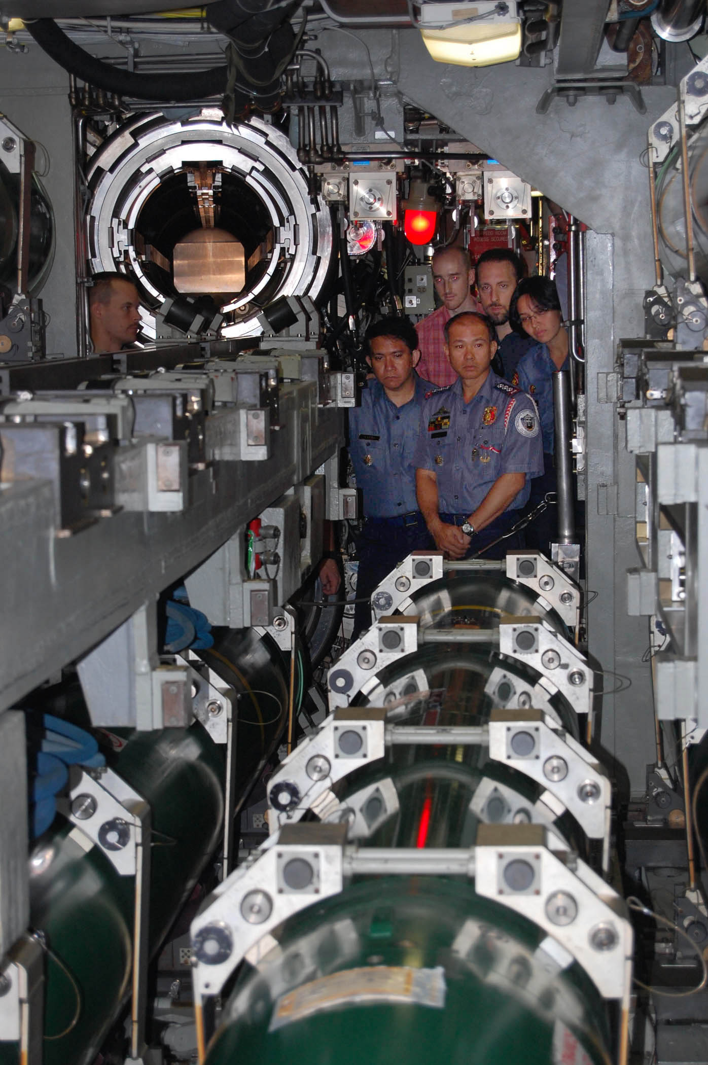 339k | Representatives from the Philippine National Police and USAID look on as Lt. Mathias Vorachek, far left, combat systems officer aboard the attack submarine Connecticut (SSN-22), provides a demonstration of the weapons handling system. The group toured Connecticut during a port visit to Subic Bay, Philippines on 5 January 2010. | USN photo # N-6005S-005 by Lt.j.g. Lucas B. Schaible, courtesy of navy.mil. | |