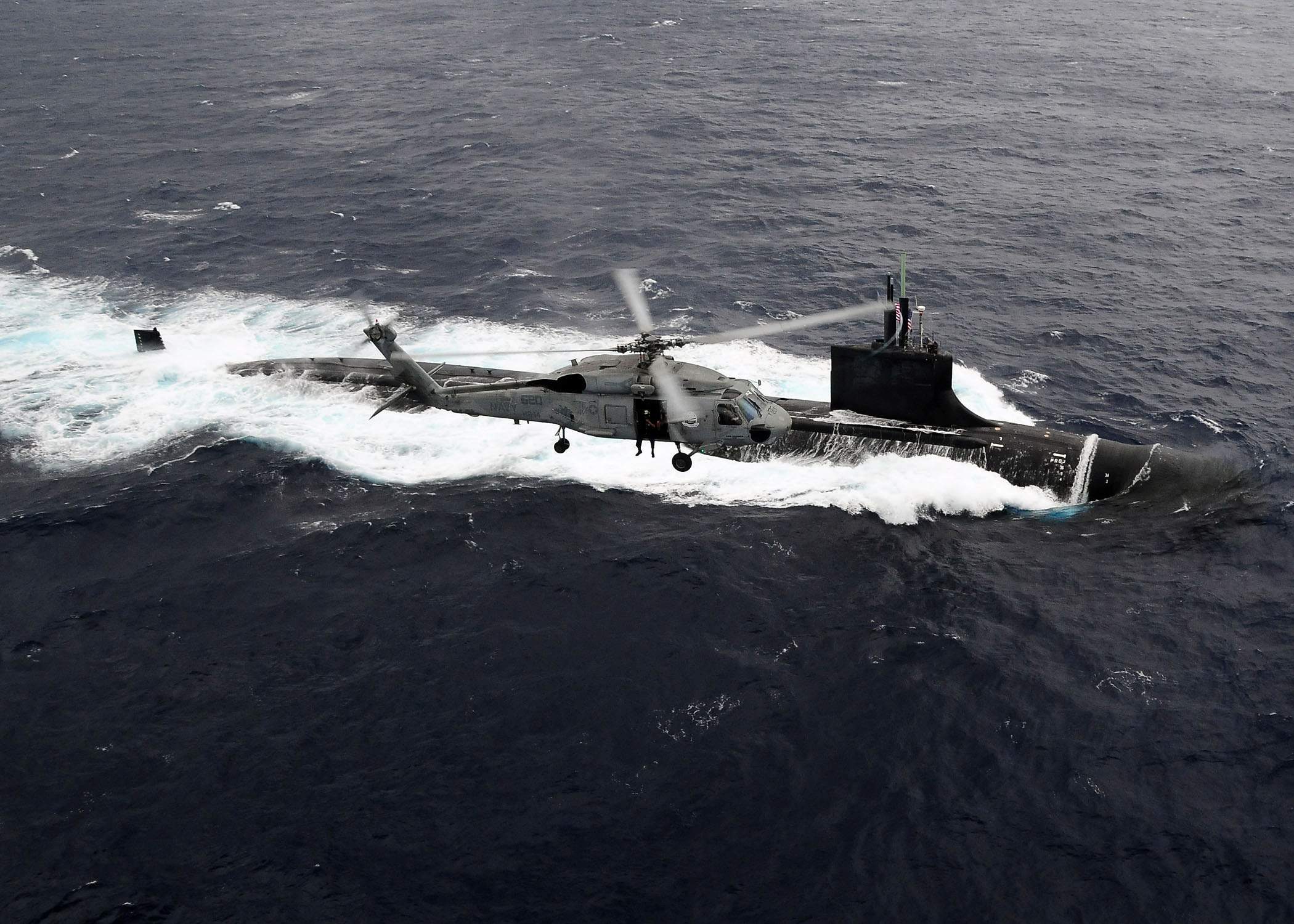 657k | Connecticut (SSN-22) looking very much like the waters of the Philippine Sea minus the foam on 16 November 2007, at the conclusion of ANNUALEX 19G. | Photo courtesy of LTJG Chris Stevens, HS-14. | |