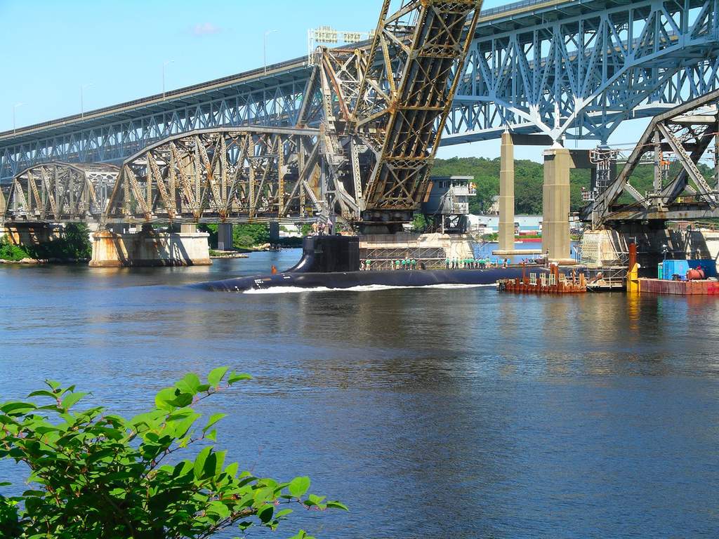 159k | The Connecticut (SSN-22) navigating the Thames River in July 2006. | Photo courtesy of LT. Tyler Cameron & submitted by Bill Gonyo. | |