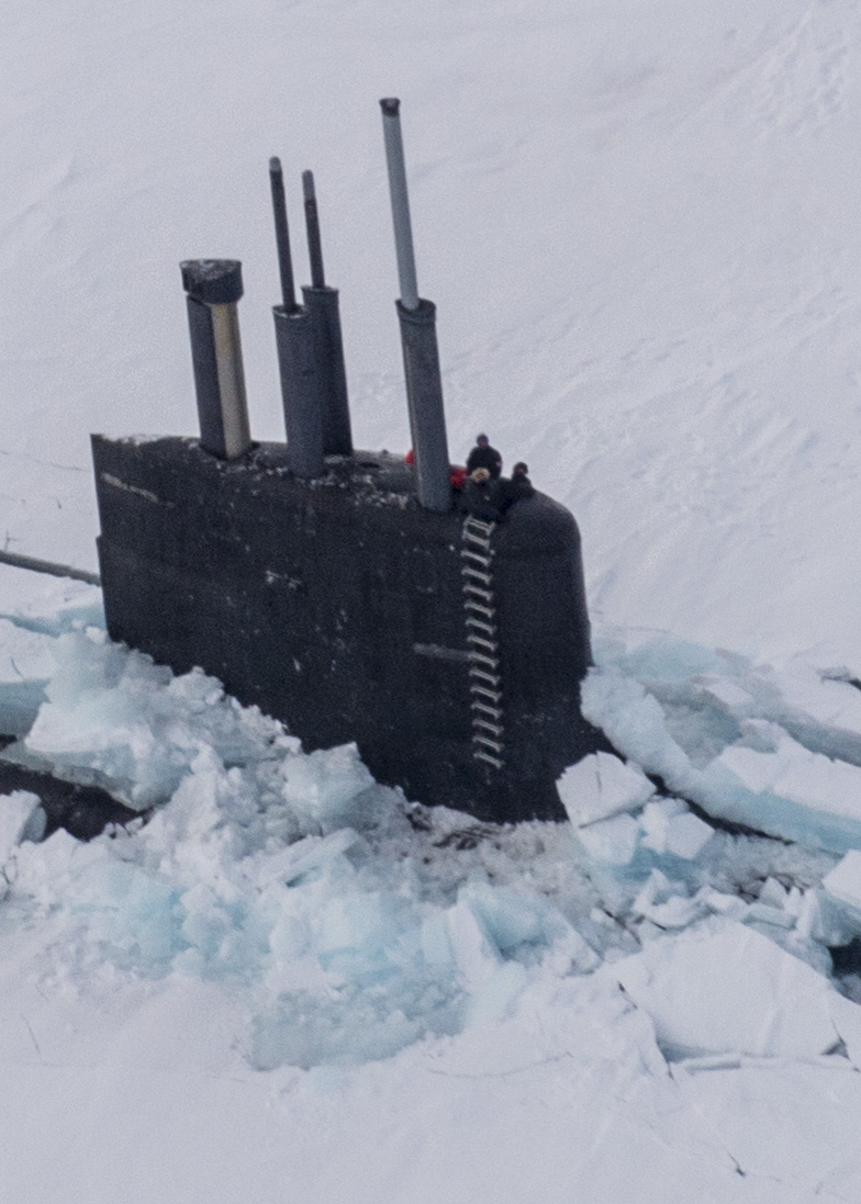 262k | Connecticut (SSN-22) breaks through the ice during Ice Exercise (ICEX) 2018. ICEX 2018 is a five-week exercise that allows the Navy to assess its operational readiness in the Arctic, increase experience in the region, advance understanding of the Arctic environment, and continue to develop relationships with other services, allies and partner organizations. | USN photo 180307-F-SV928-154 by Airman 1st Class Kelly. | |