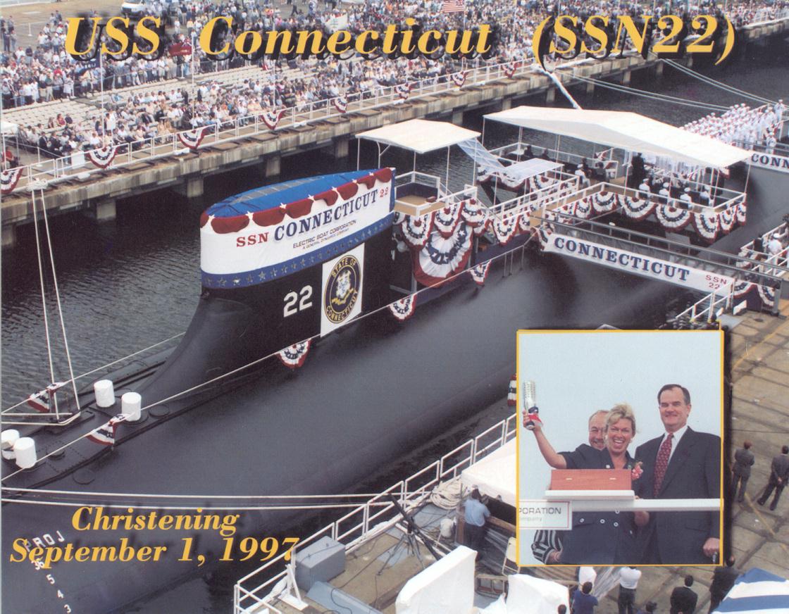 2.36k | Eleven page PDF of the Connecticut (SSN-22) and her sponsor, Patricia L. Rowland, wife of the Governor of Connecticut, John G. Rowland, at the christening of the boat on 1 September 1997. | Photo courtesy of Scott Koen & ussnewyork.com | |