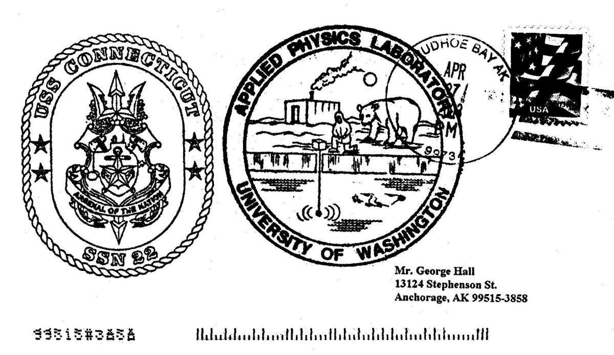 126k | Commemorative postal cover issued on the occasion of the Connecticut (SSN-22) & the Applied Physics Laboratory at the University of Washington, April 2003. | Courtesy of Jack Treutle (of blessed memory). | |