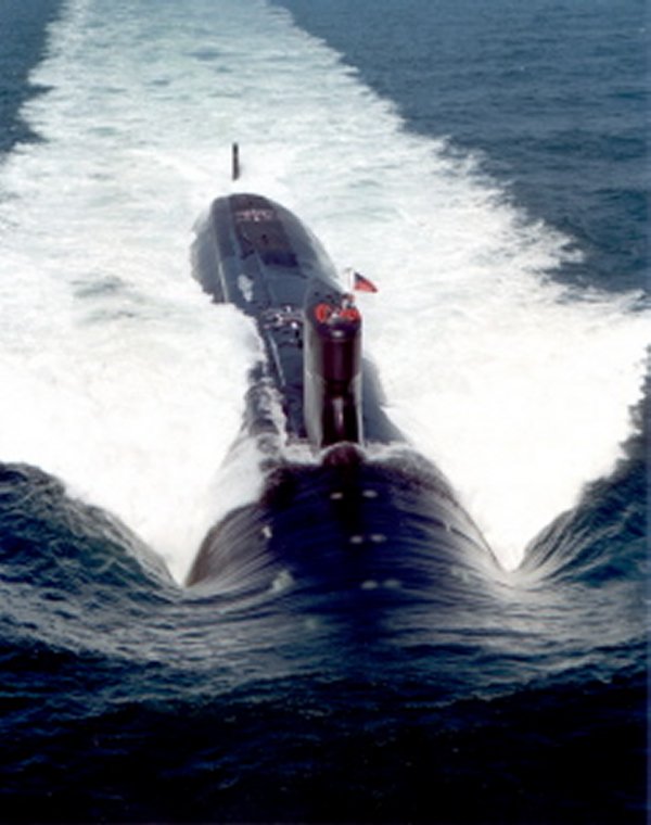 59k | Connecticut (SSN-22) underway off the coast of New England during her sea trials, circa 1997-98. | Courtesy of General Dynamics and Electric Boat. | |