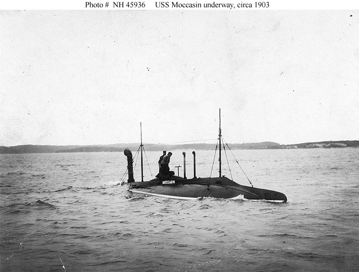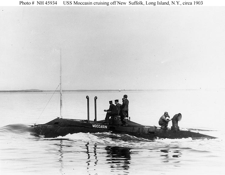 54k | Moccasin (SS-5) cruising off New Suffolk, Long Island, New York, circa 1903. | USNHC photograph # NH 45934. | |