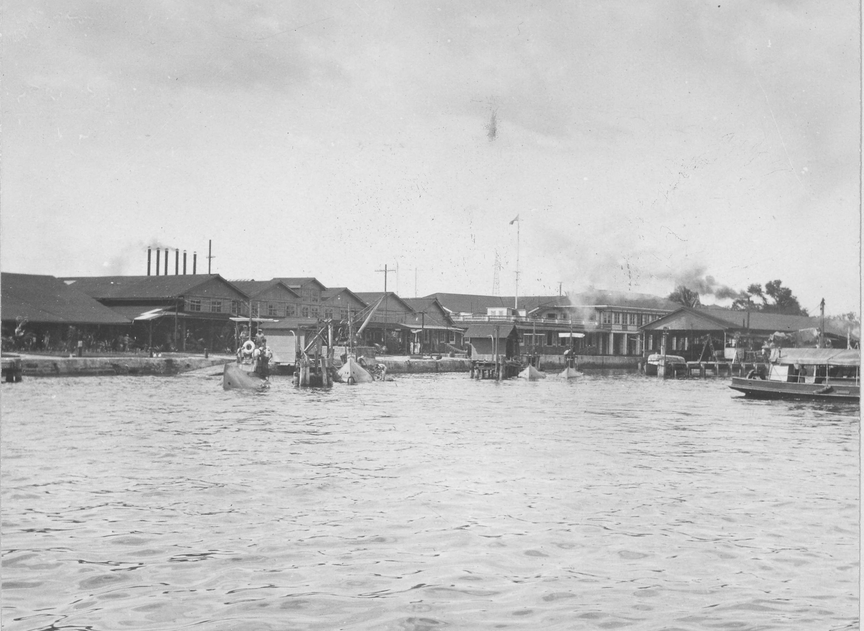 455k | Submarine base at Cavite. Manila, Philippine Islands. It looks as if all 4 boats appear in this circa 1917 photo. |