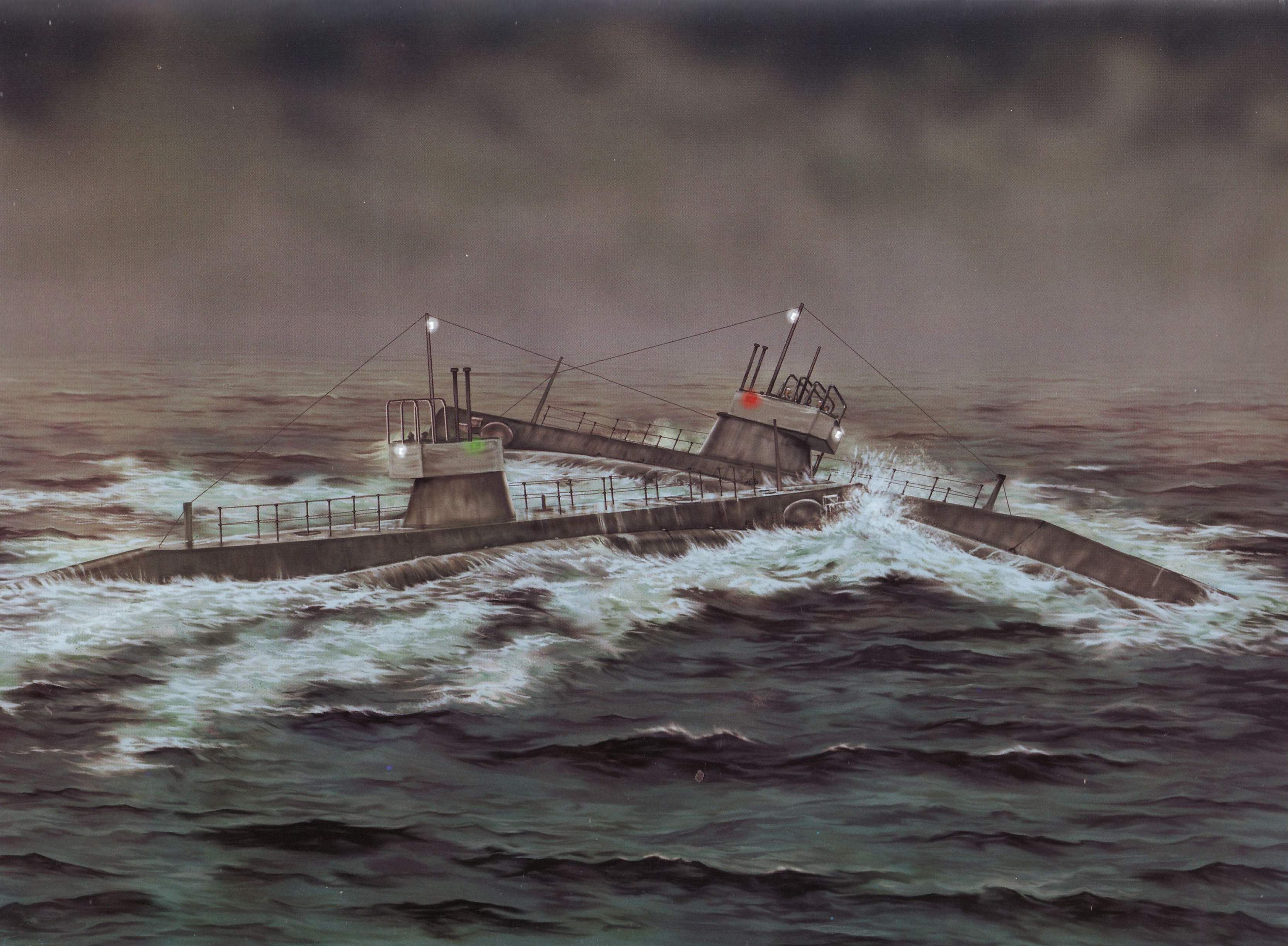 ![]() | 677k | An oil painting by Peter Bull of the moment that the submarine F-3 (SS-22) rammed into her class mate F-1 (SS-20), off La Jolla, California, on 17 December 1917. | Image scanned from "U.S. Submarines 1900-35" by Jim Christley and illustrated by Peter Bull. Published by Osprey Publishing Ltd, ISBN978 1 84908 185 6, courtesy of Robert Hurst. | ||