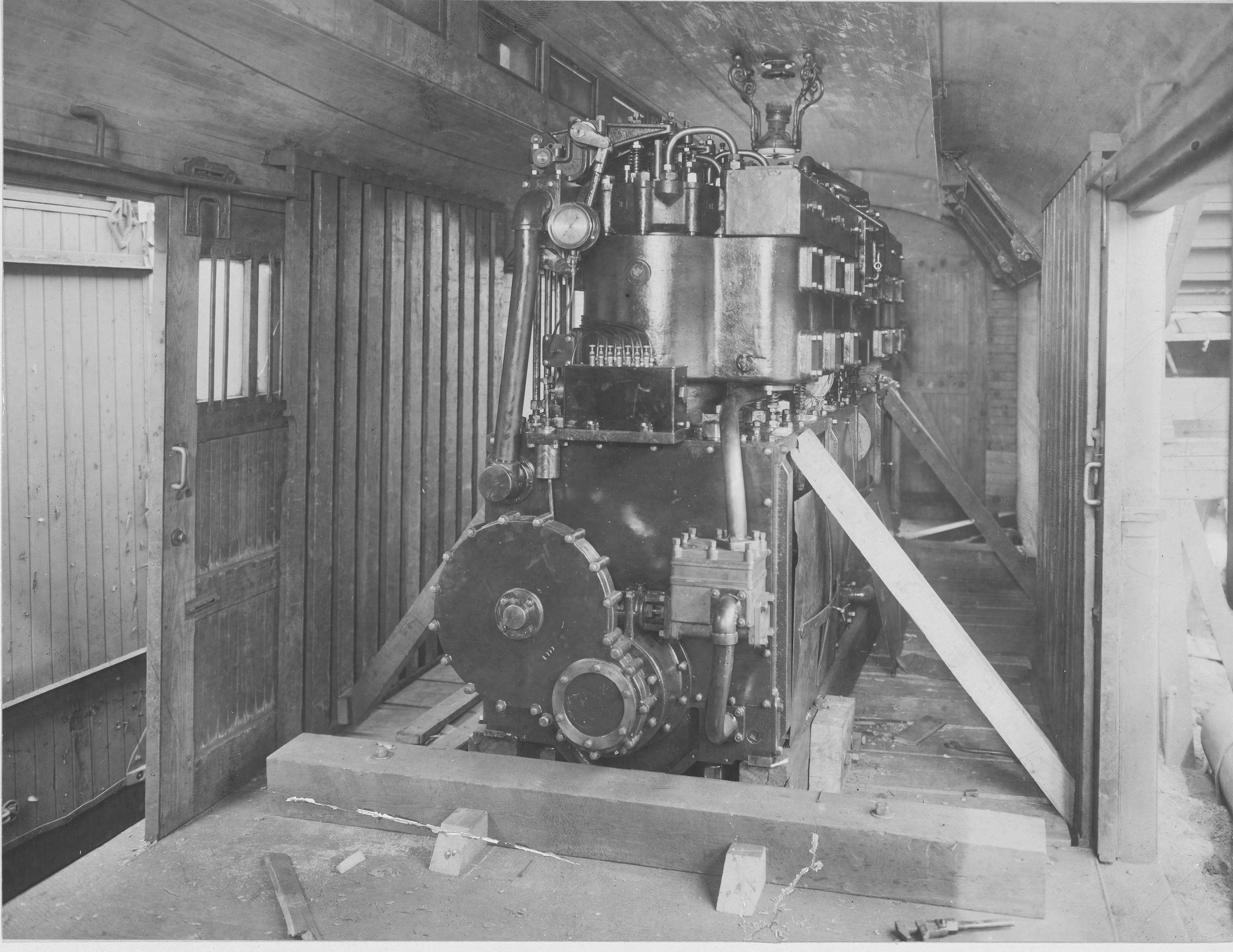 593k | Navy - Engines - Transportation of submarine engine for F-1 (SS-20) from New York City to San Francisco. F-1 is stationed at Mare Island. This photograph shows the engine in full view when loaded on the car. | Photo i.d. courtesy of Ric Hednan . Photographer: Paul Verkin. National Archives Identifier: 45510637 Local Identifier: 165-WW-324A-8. Photo courtesy of catalog.archives.gov | ||