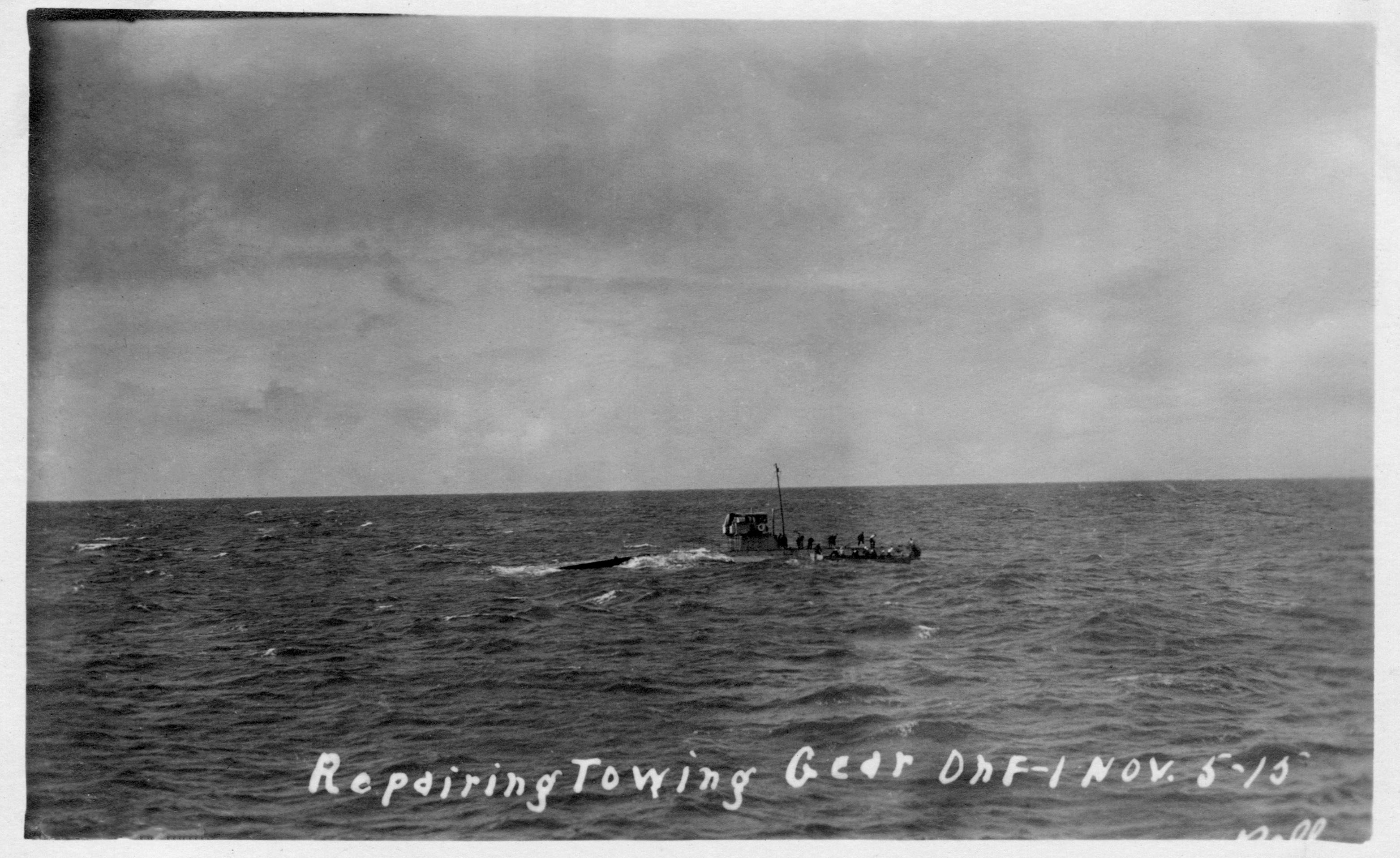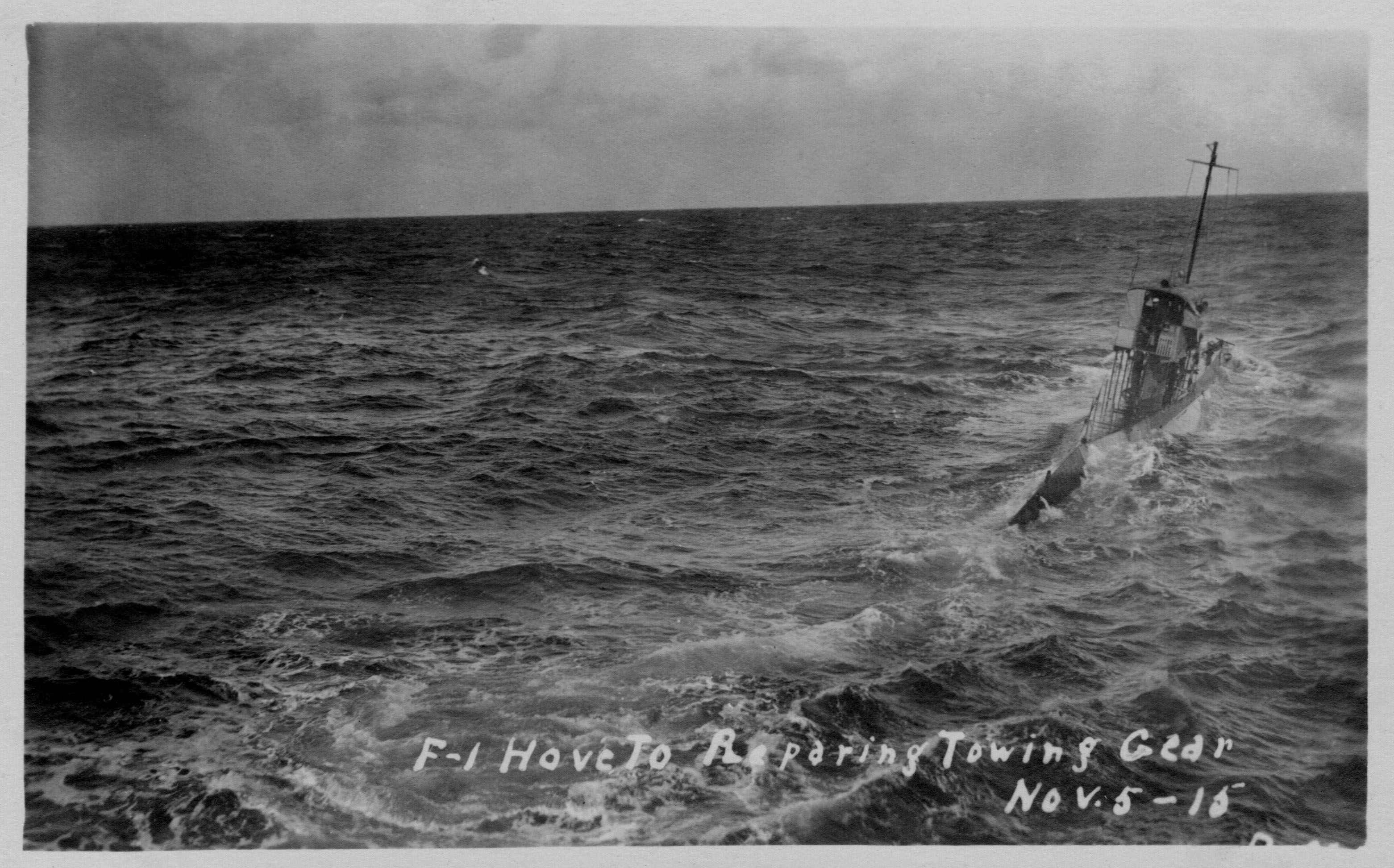 891k | F-1 (SS-20) hove to repairing towing gear. | Image and text provided by Vallejo Naval & Historical Museum via Darryl L. Baker. | ||
