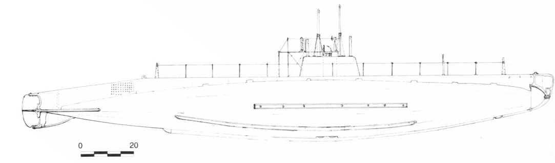 ![]() | 24k | In the F class (SS-20 - 23) the conning tower is shown in dashed vertical lines between the two periscopes. This class & the E class (SS-24 - 25) introduced bow planes into Electric Boat practice. | Drawing by Jim Christley. Photo & text courtesy of U.S. Submarines Through 1945, An Illustrated Design History by Norman Friedman. Naval Institute Press. | |||
