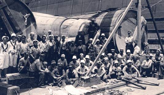 88k | This edited photo illustrates how the F-4 (SS-23) was moved from deep water into the dry dock after being raised from a record setting depth of 320 feet, a salvage record that held for 54 years. | Photo & text courtesy of Beneath the Surface: World War I Submarines Built in Seattle and Vancouver by Bill Lightfoot. Photo from Kerrick, Military & Naval America. | |||