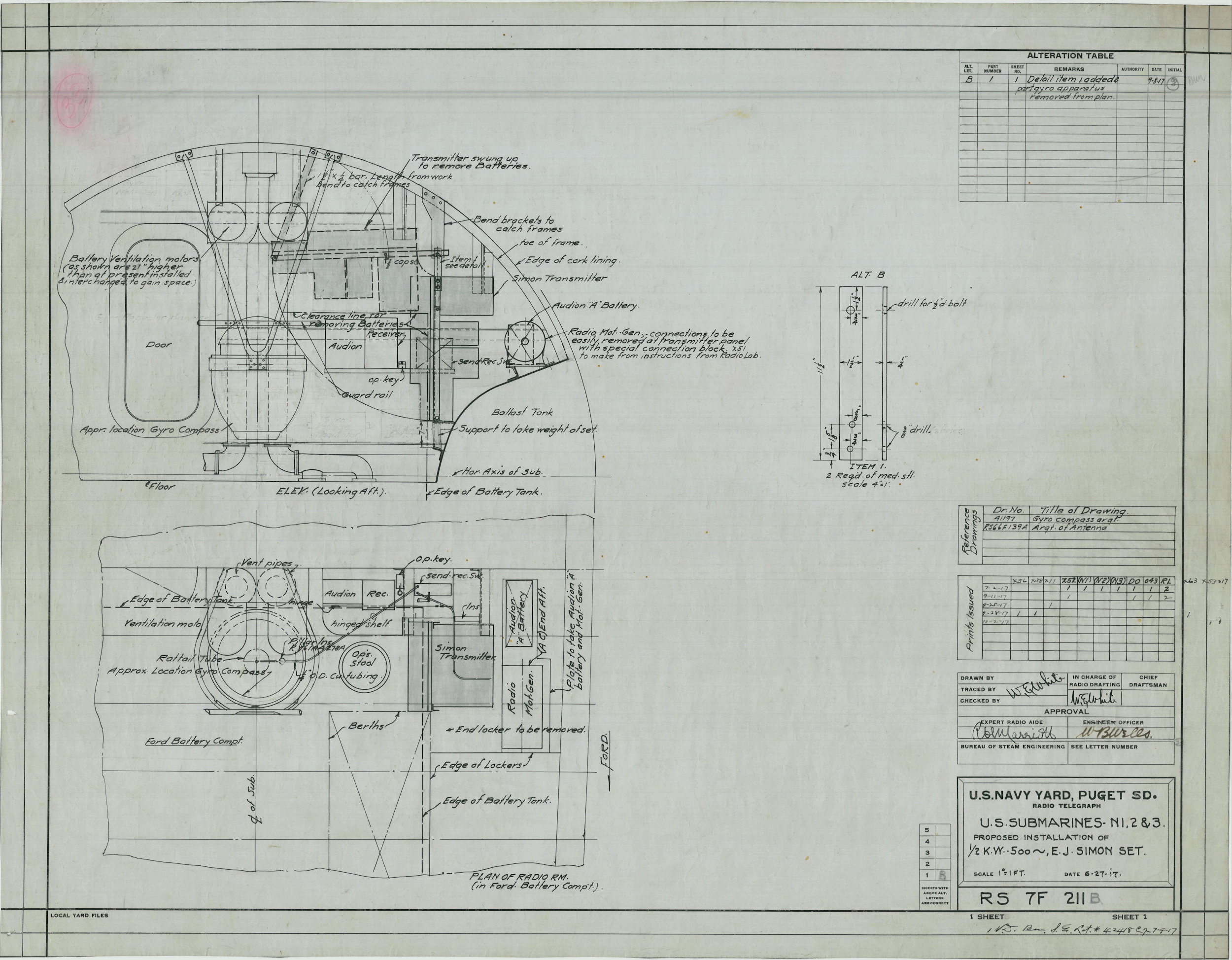 ![]() | 890k | Proposed Installation of 1/2 K.W. 500, E.J. Simon Set for submarines N-1 (SS-53), N-2 (SS-54) & N-3 (SS-55), 9 August 1917. | National Archives Identifier: 83833147 Photo courtesy of catalog.archives.gov | |