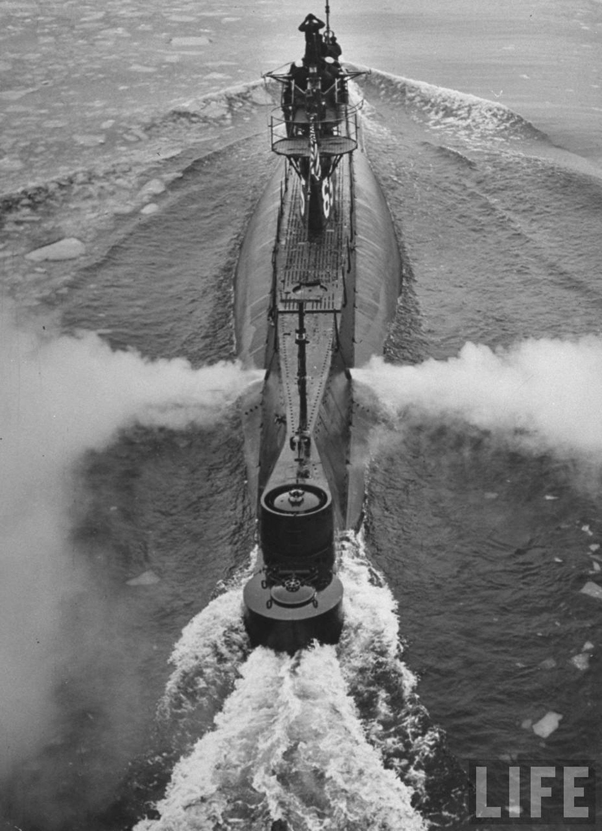 386k | O-4 (SS-65) roaring through the ocean off New London, CT, in 1942. | Photographer: Dimitri Kessel, courtesy of time.com. via & Life. | |