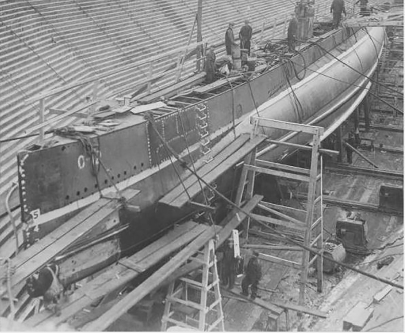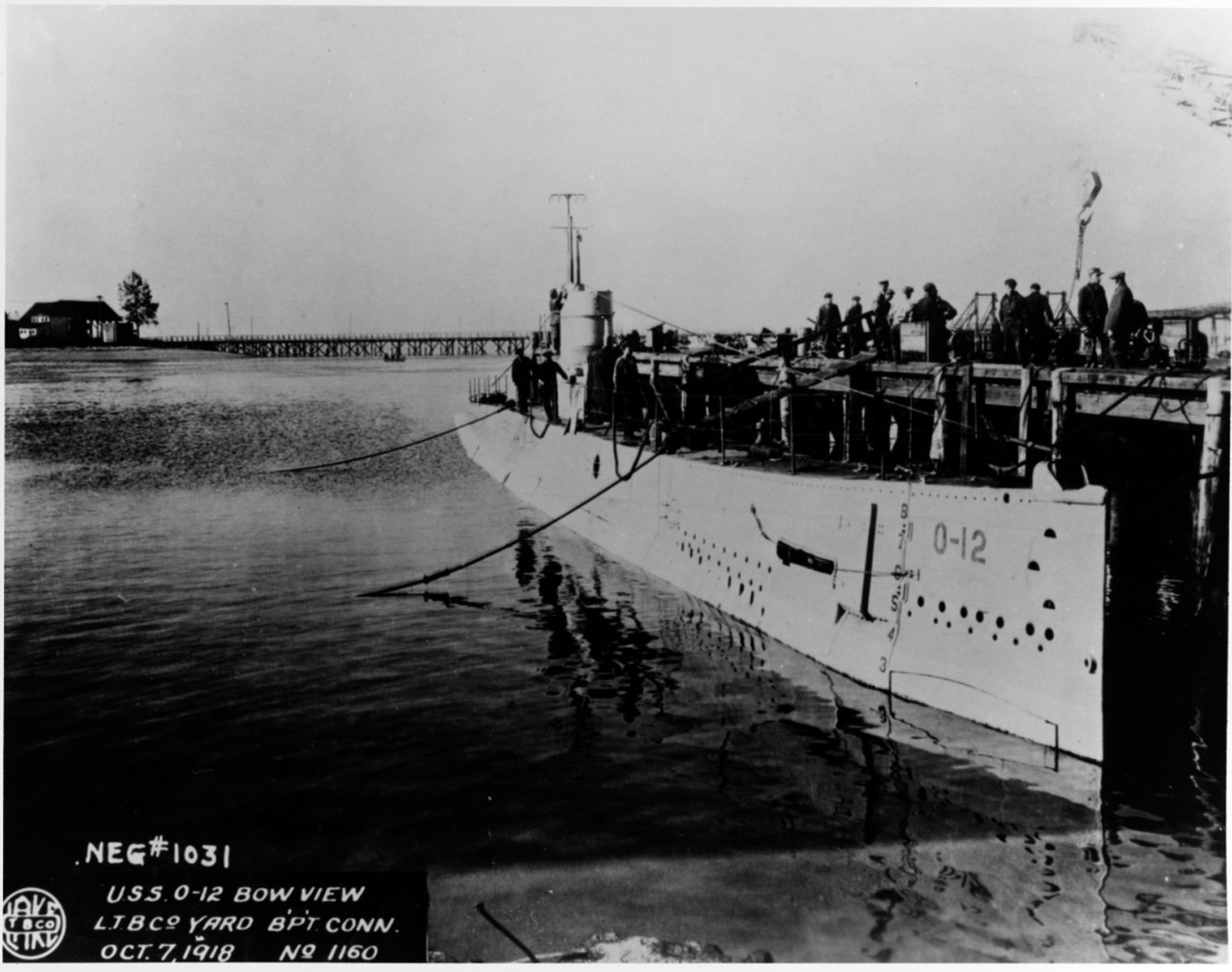 662k | O-12 (SS-73) at the Lake Torpedo Boat Co., Bridgeport, Connecticut, on 7 October 1918, just prior to completion. | NHHC photo NH-86969 via history.navy.mil | |