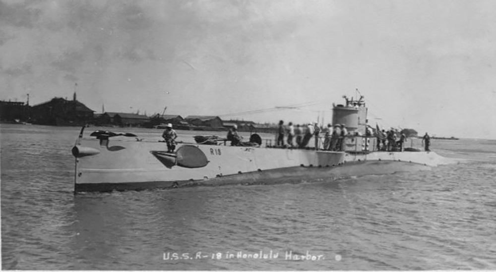 1.40k | R-18 (SS-95) underway in Pearl Harbor, Hawaii Territory, during the 1920s or early 1930s. Seaplane hangars on the southern end of Ford Island are in the right background. | USN photo # NH 107307, courtesy of U.S. Naval History and Heritage Command. Collection of Chief Warrant Officer James B. Dofflemeyer, USN & provided by Robert Hurst. | |