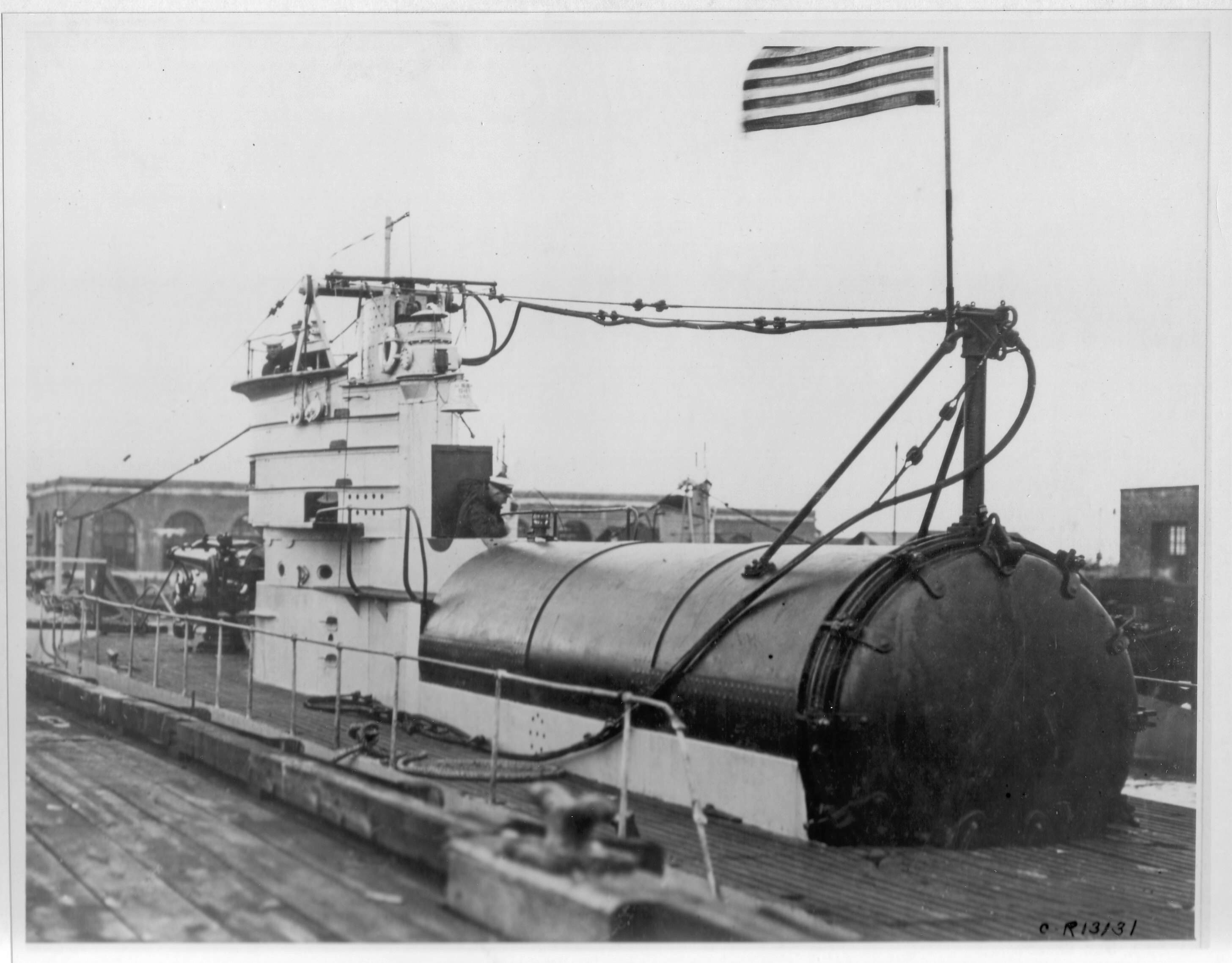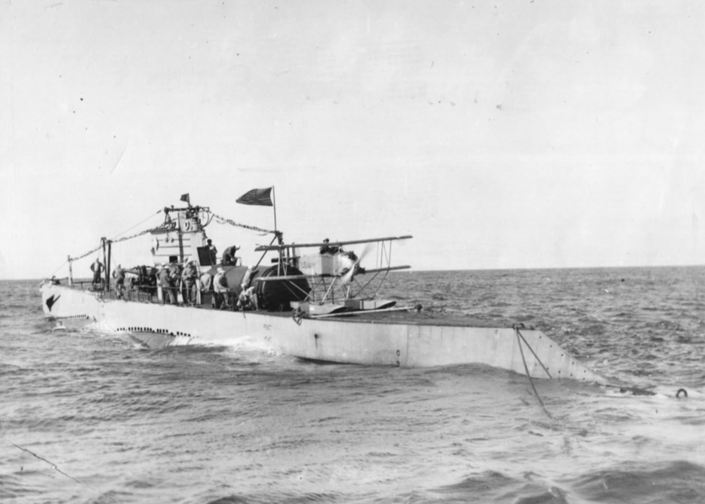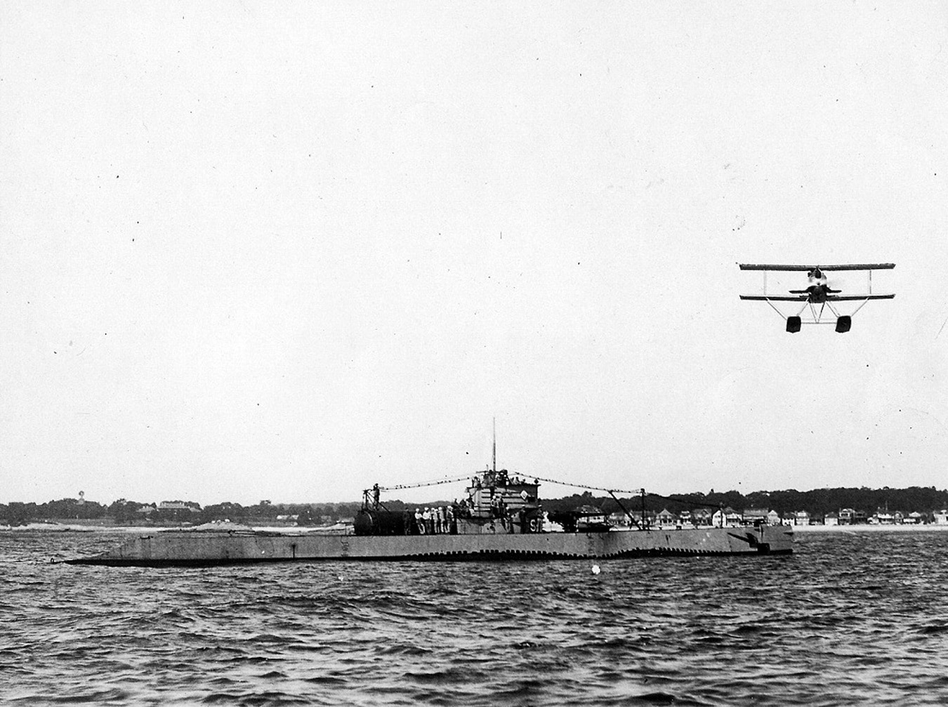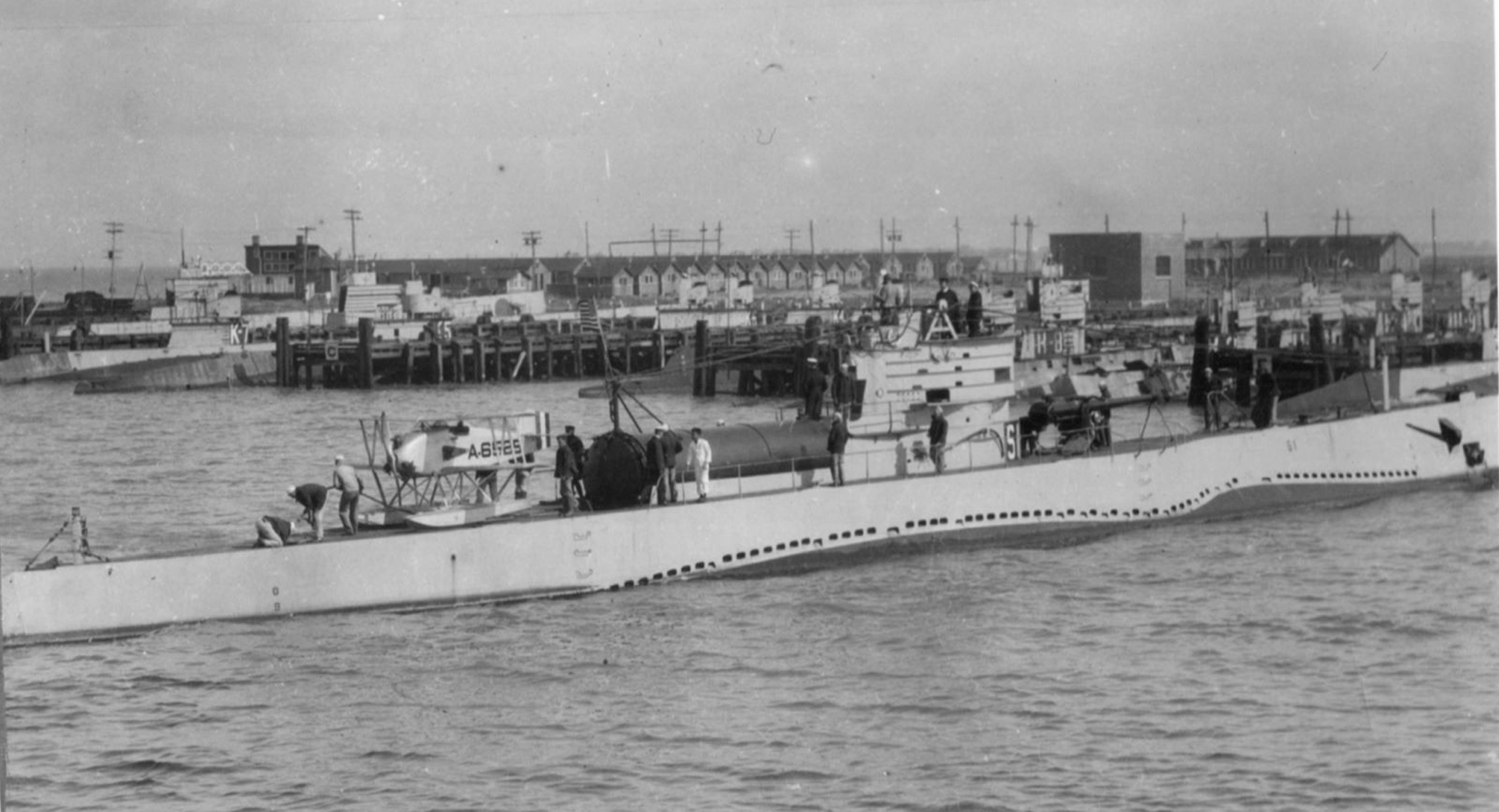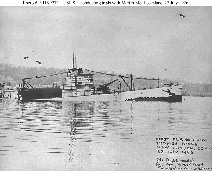 1.20k | The S-1 (SS-105) with her after deck awash, preparing to take a Martin MS-1 seaplane on board during tests in October 1923. Probably taken at Hampton Roads, Virginia. | USN photo courtesy of ussubvetsofwwii.org. Text courtesy of USNHC. | |