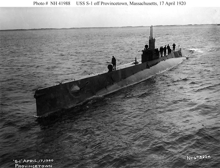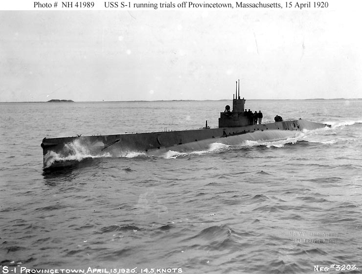 100k | S-1 (SS-105) off Provincetown, Massachusetts, on 17 April 1920, while running trials. | USNHC photograph # NH 41988. | |