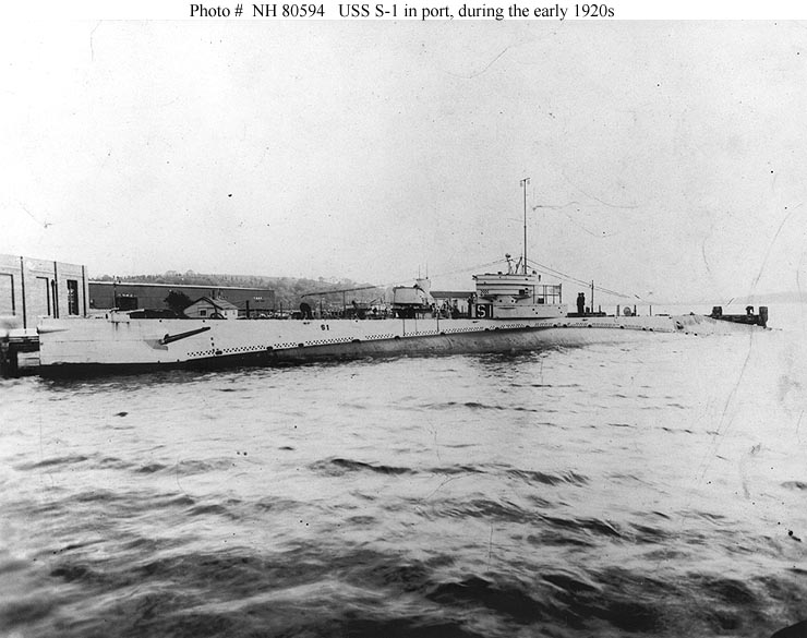 78k | S-1 (SS-105), 24 October 1923. Note scouting floatplane (Bureau # A-6525) on her after deck, probably at Norfolk, Virginia. | US National Archives photo # 19-N-475A, a US Navy Bureau of Ships photo now in the collections of the US National Archives. | |