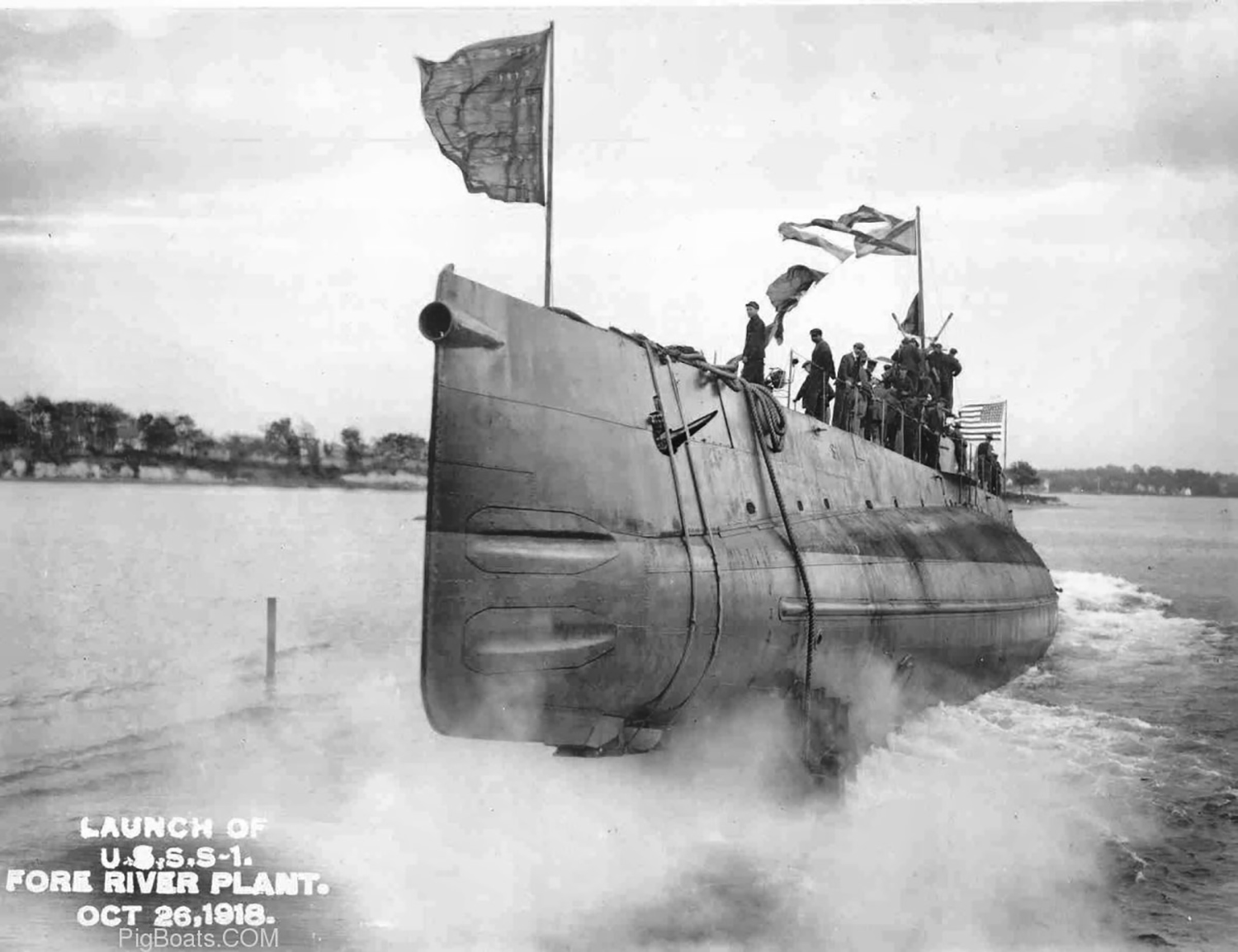 434k | The S-1 (SS-105) is launched at Fore River Shipbuilding Co., Quincy, MA. on 26 October 1918. | Photo From The Private Collection Of The Late Rick Larson MMCM (SS) via Ric Hedman. | |