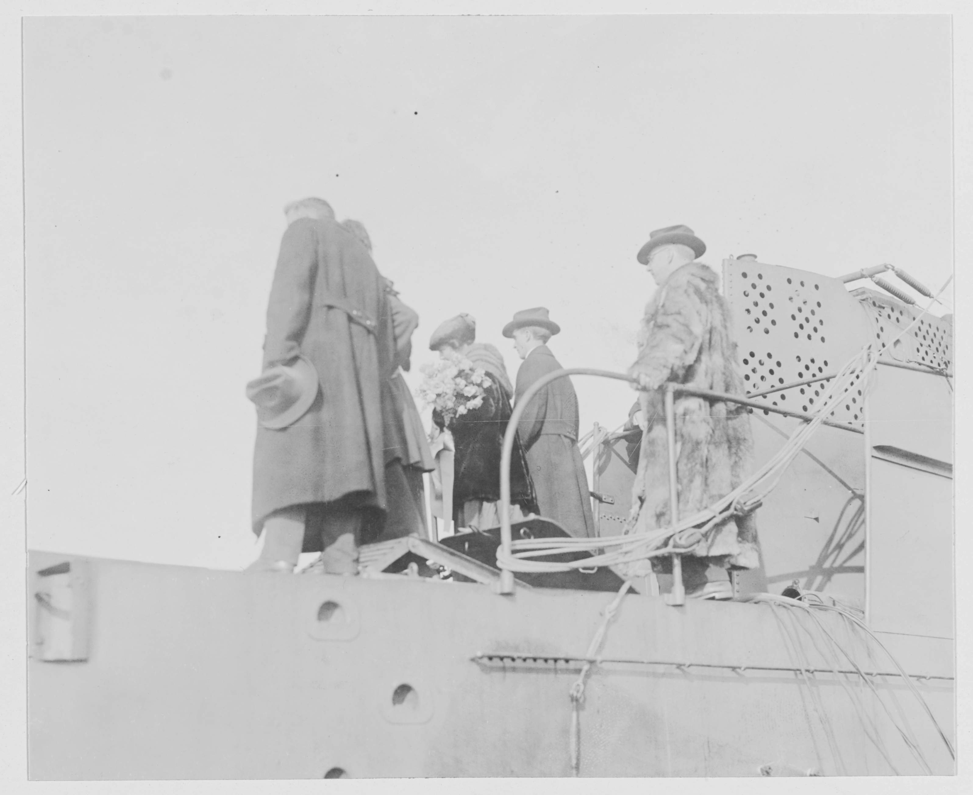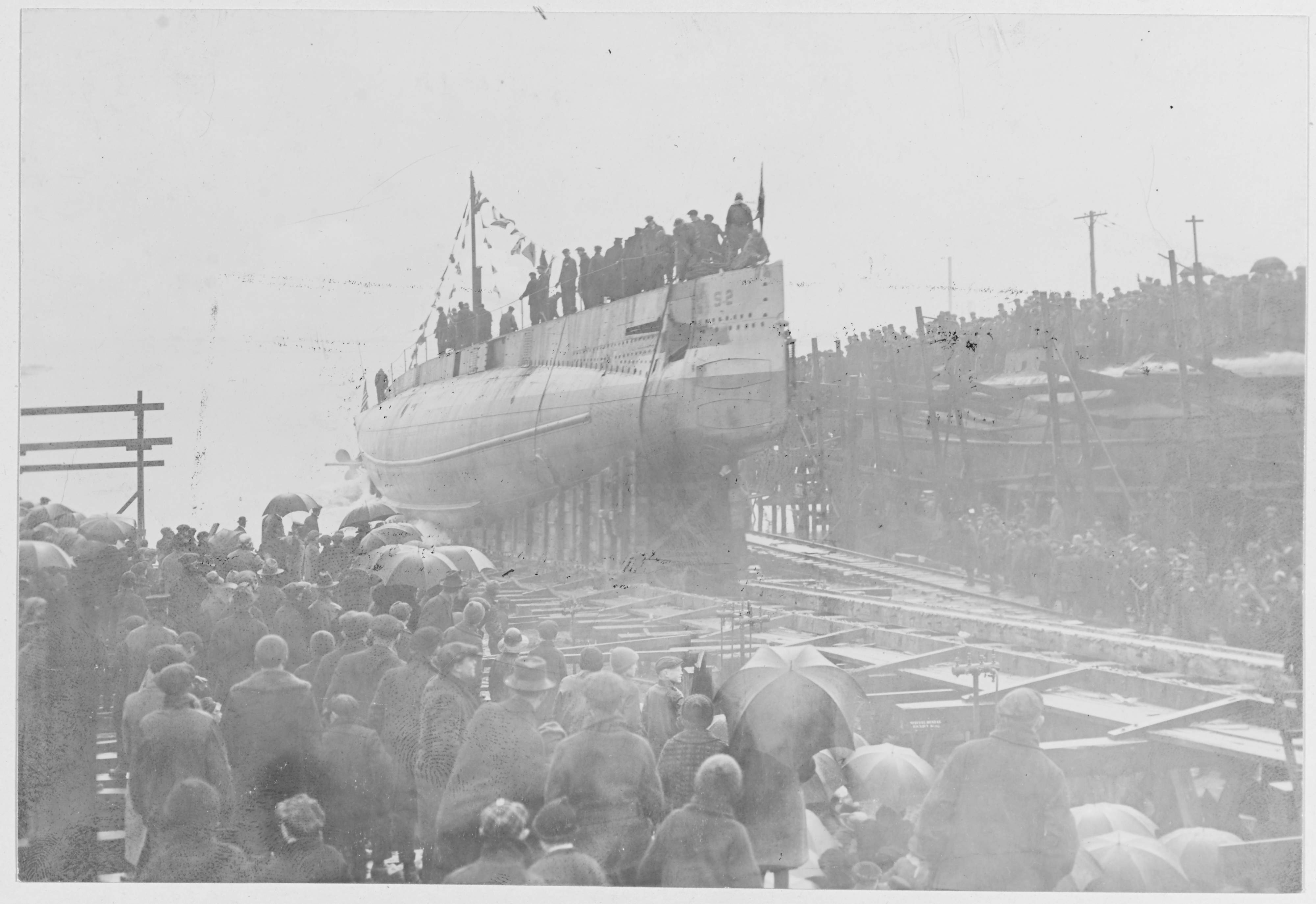 ![]() 0810611 | 1.20k | Launching party for S-16 (SS-121) is on S-2 (SS-106). Mrs. Archibald McNeil, Jr. was the sponsor of S-16 which was launched at the Lake Torpedo Boat Company, Bridgeport, Connecticut, 24 December 1919. | Image NH 108403 and text courtesy of history.navy.mil | |