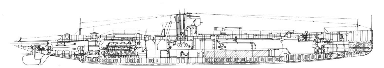 56k | S-12 (SS-117), shown about 1941, was one of four government S-boats: S-10 to 13 (SS-115-18), redesigned by Portsmouth Navy Yard to carry a torpedo tube aft. Structural detail has been included in this drawing to suggest the complexity of the C & R design, which made it extremely difficult to maintain. The V-1-class (SS-163-65) had similar complex structures. | Drawing & Text courtesy of U.S. Submarines Through 1945, An Illustrated Design History by Norman Friedman. Naval Institute Press. | |