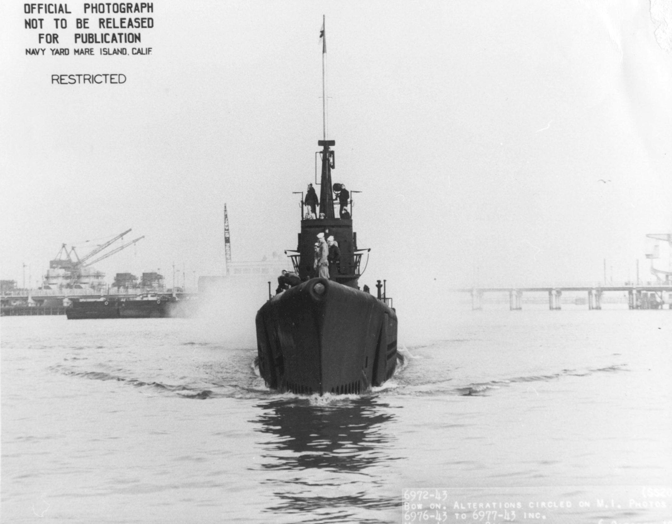 206k | Bow on view of the Thresher (SS-200) in the Mare Island channel on 6 October 1943. | USN photo # 6972-43, courtesy of Darryl L. Baker. | |