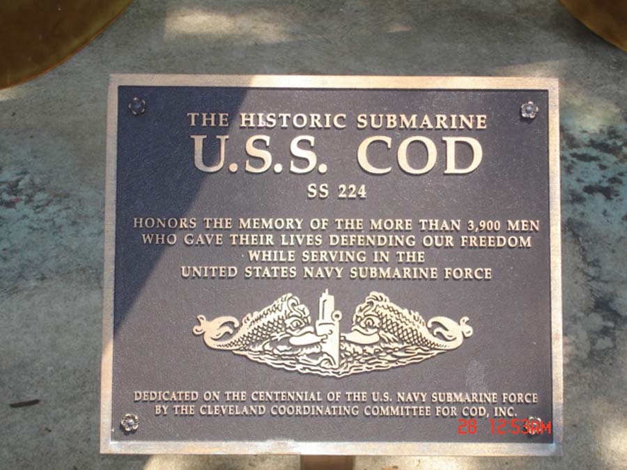 ![]() | 41k | Cod (SS-224) bow view on permanent display at Cleveland, Ohio. | Courtesy of Wallace Correll. | |