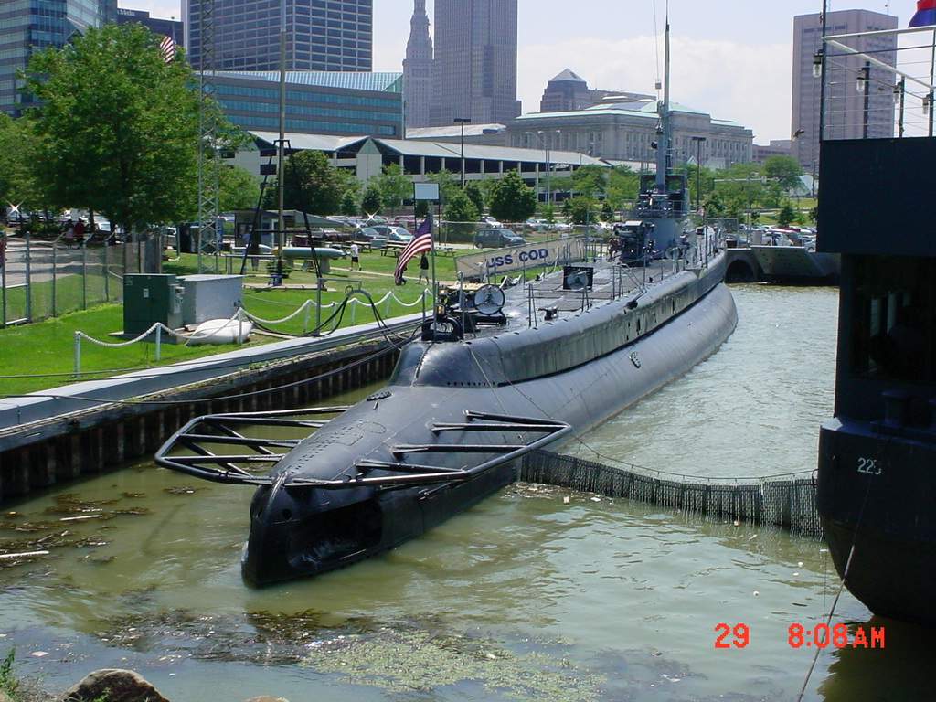 ![]() | 46k | Cod (SS-224) on permanent display at Cleveland, Ohio. | Courtesy of Wallace Correll. | |
