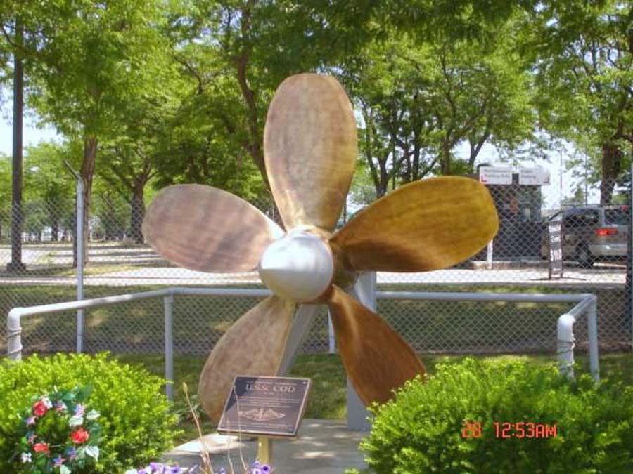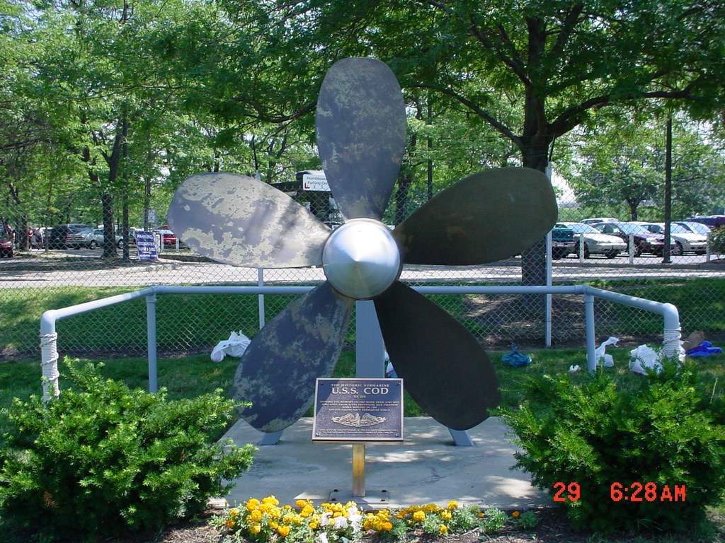 ![]() | 168k | Cod (SS-224) ship's prop, 29 July 2003, on permanent display at Cleveland, Ohio. | Courtesy of SK1(SW) Joseph A. Gless. | |