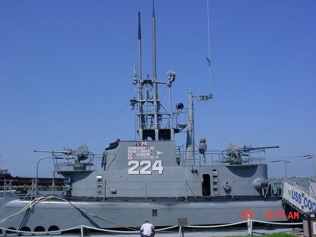 ![]() | 123k | Cod (SS-224) stern view with a good view of the screw guards, 29 July 2003, on permanent display at Cleveland, Ohio. | Courtesy of SK1(SW) Joseph A. Gless. | |