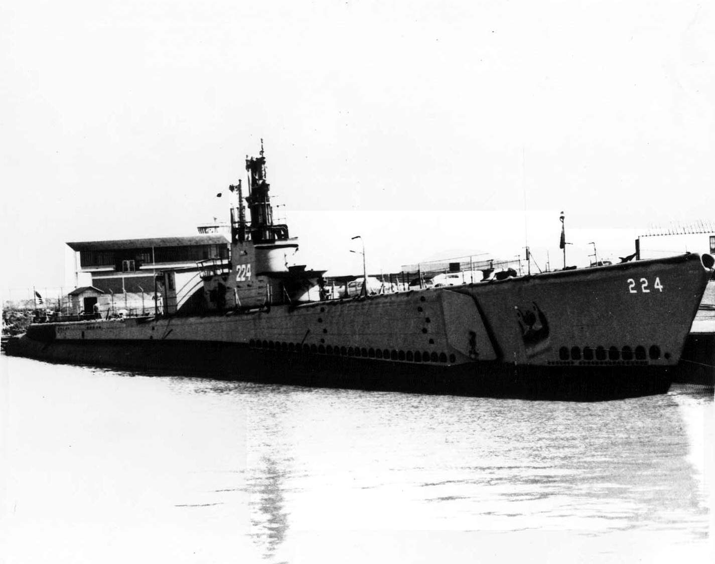 ![]() | 93k | Starboard quarter view of the Cod (SS-224), circa possibly 1950's, probably when she was a reserve trainer after 1946. Note that all her deck armament has been removed. | Text courtesy of John Hummel, (USNR) & DANFS. USN photo courtesy of ussubvetsofworldwarii.org | |