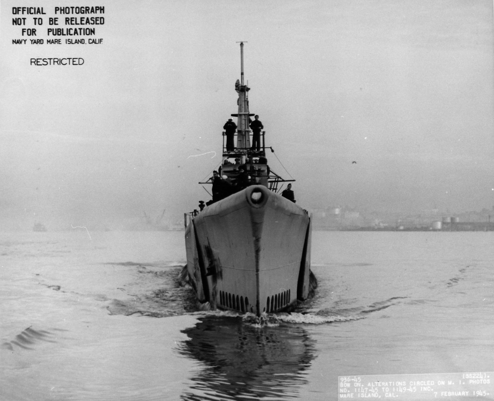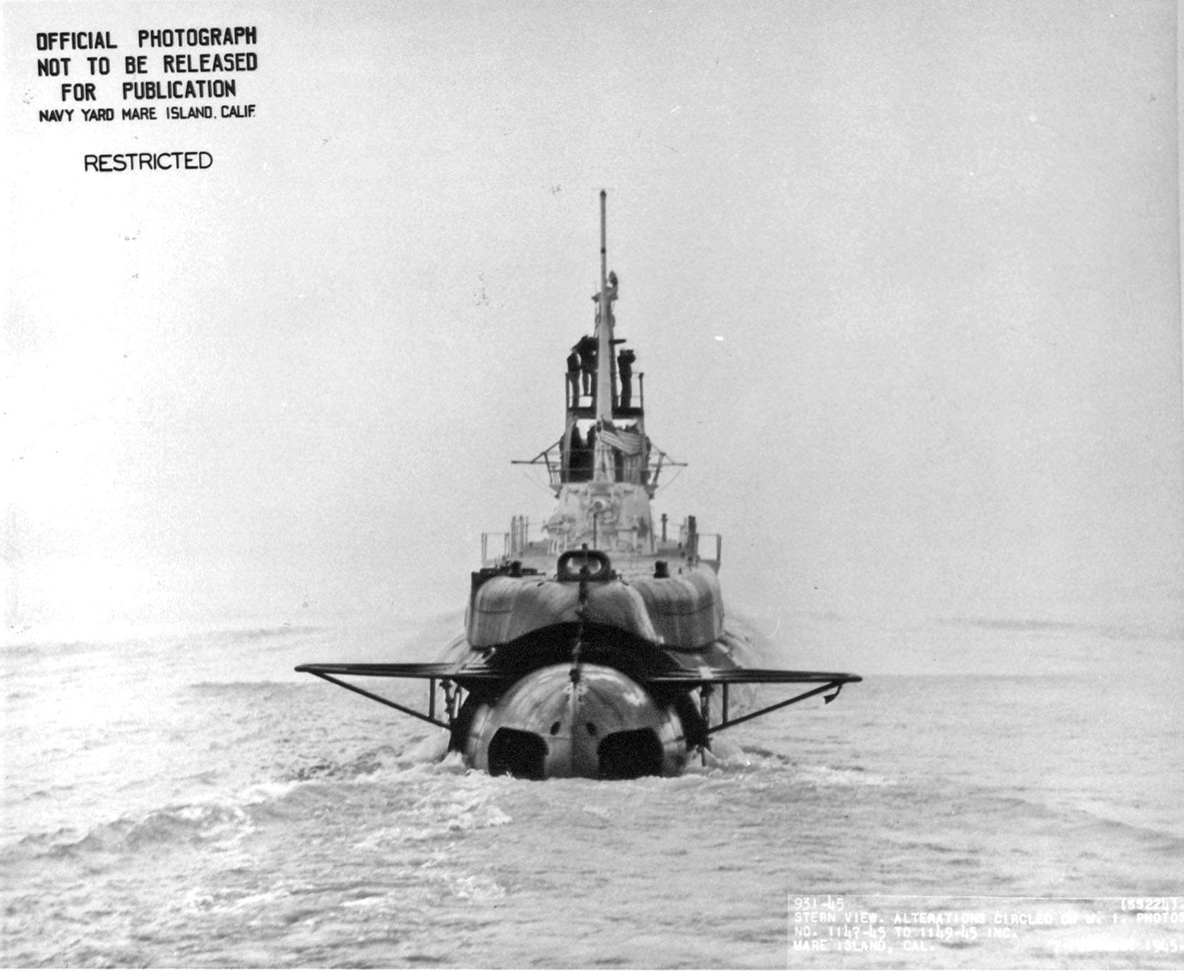 ![]() | 203k | Bow on of Cod (SS-224) off Mare Island on 7 February 1945. | USN photo # 936-45, courtesy of Darryl L. Baker. | |