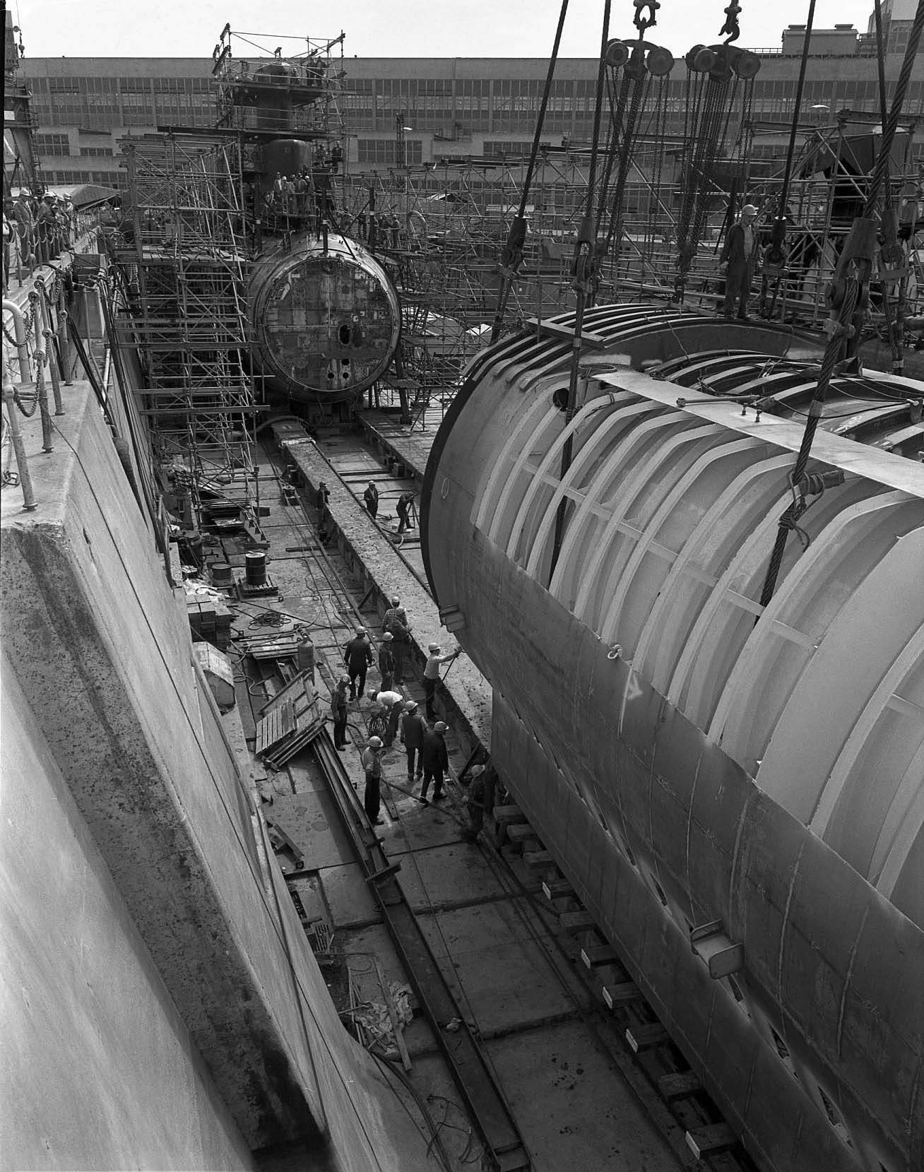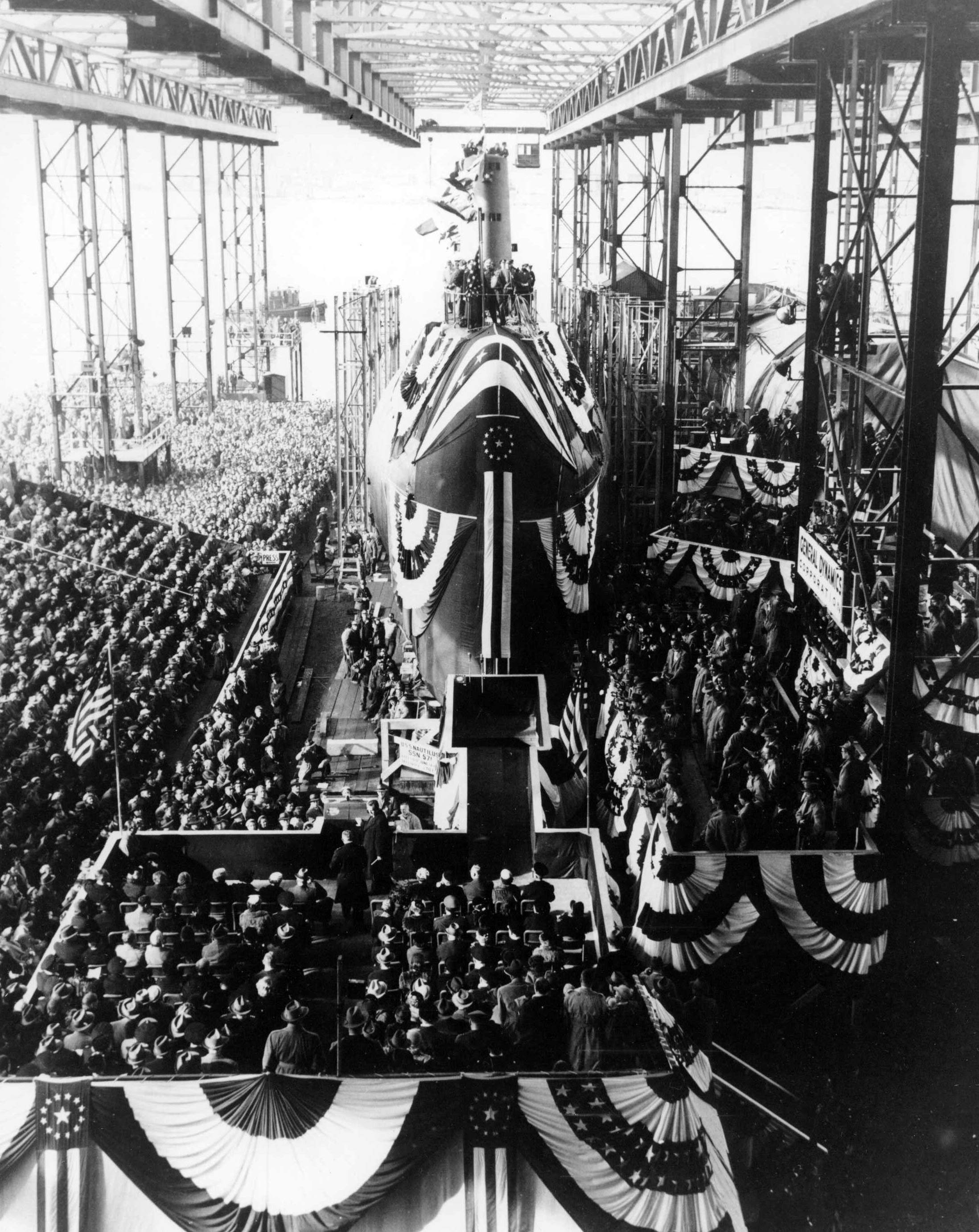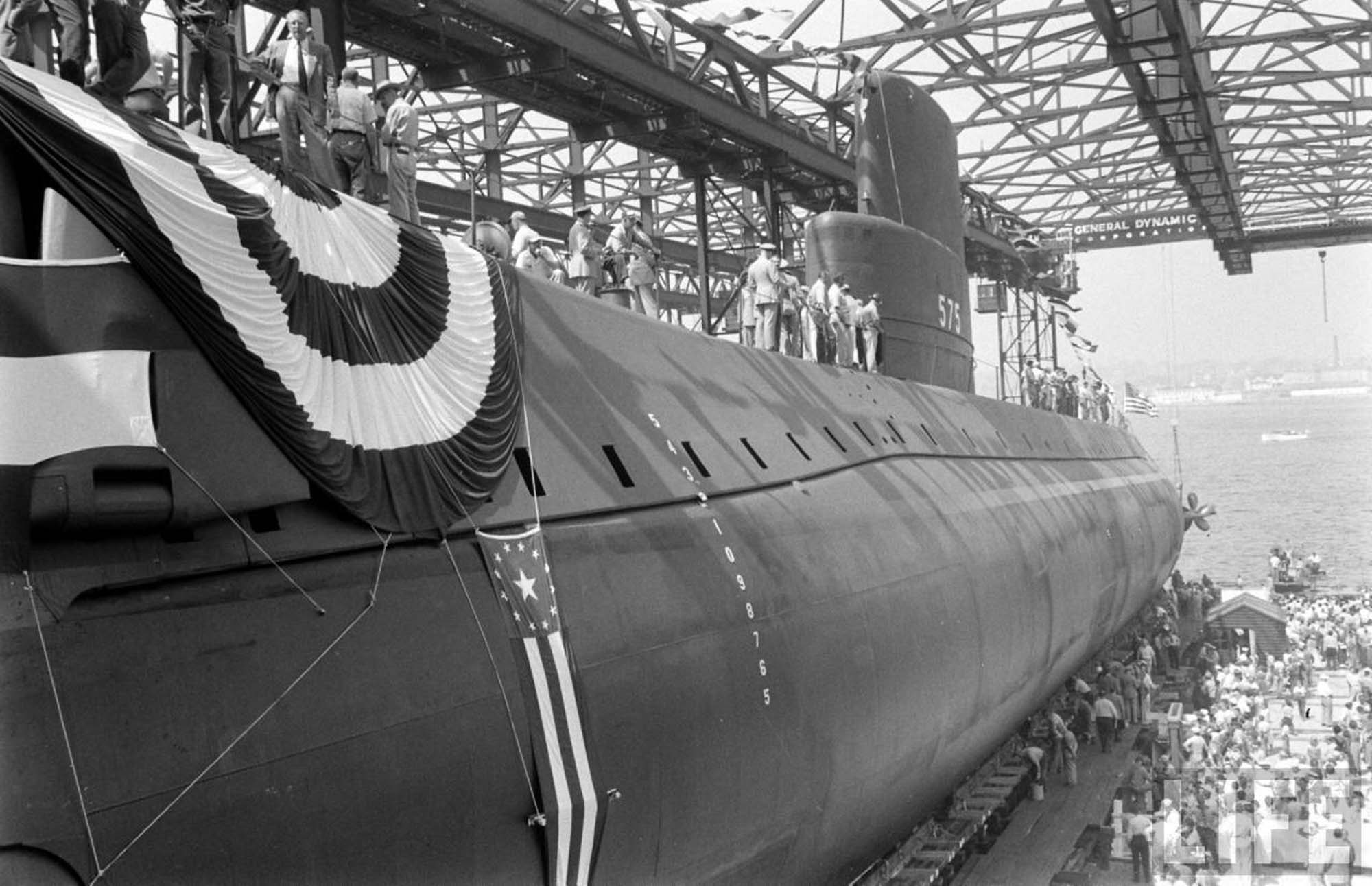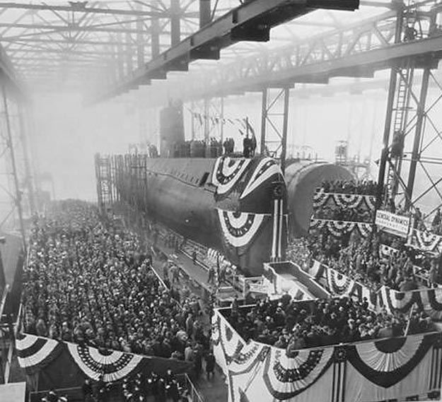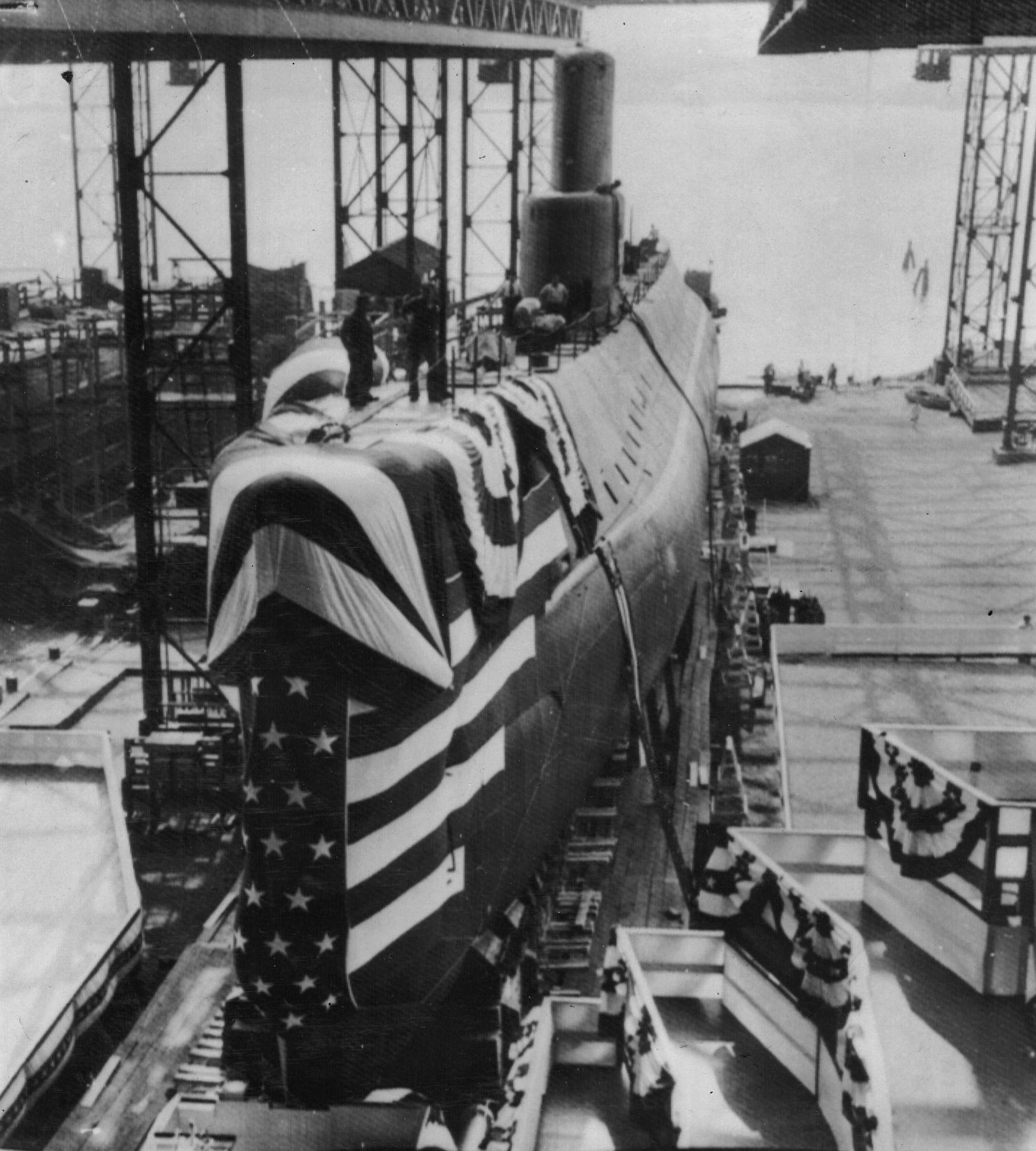 ![]() | 233k | Seawolf (SSN-575) getting ready for launching, 21 July 1955, at General Dynamcs, Electric Boat Div. Groton, CT. | Photo courtesy of life.time.com via Bill Gonyo. | |