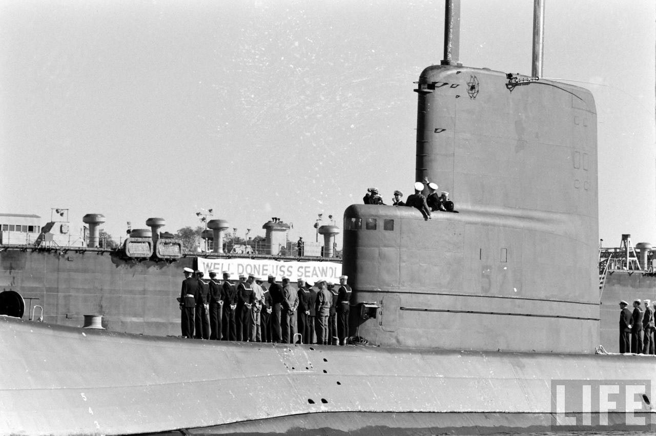 ![]() | 111k | The Seawolf (SSN-575) with an escort above, October 1958. | Photographer: Hank Walker, courtesy of life.time.com | |