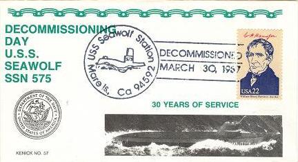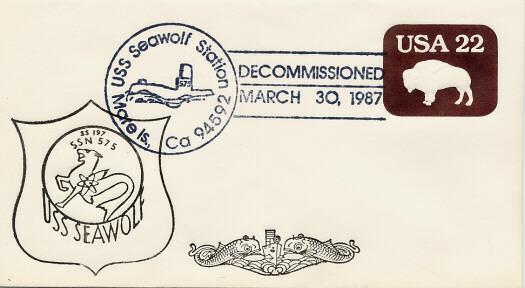 ![]() | 27k | Commemorative post card & photo inset marking the decommissioning of the Seawolf (SSN-575), at Mare Island, CA., 30 March 1987. | Courtesy of Jack Treutle (of blessed memory). | |