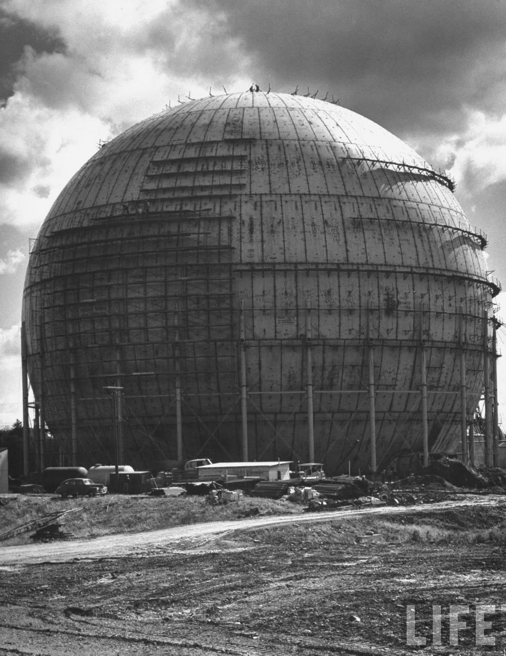![]() | 179k | Steel House For An Atomic Engine in West Milton, NY. October 1953. Huge steel shell built for the Atomic Energy Commission to house General Electric's nuclear engine for the atomic submarine Seawolf (SSN-575) which is supposed to provide a shield against possible radiation. | Photographer: Andreas Feininger, courtesy of life.time.com | |