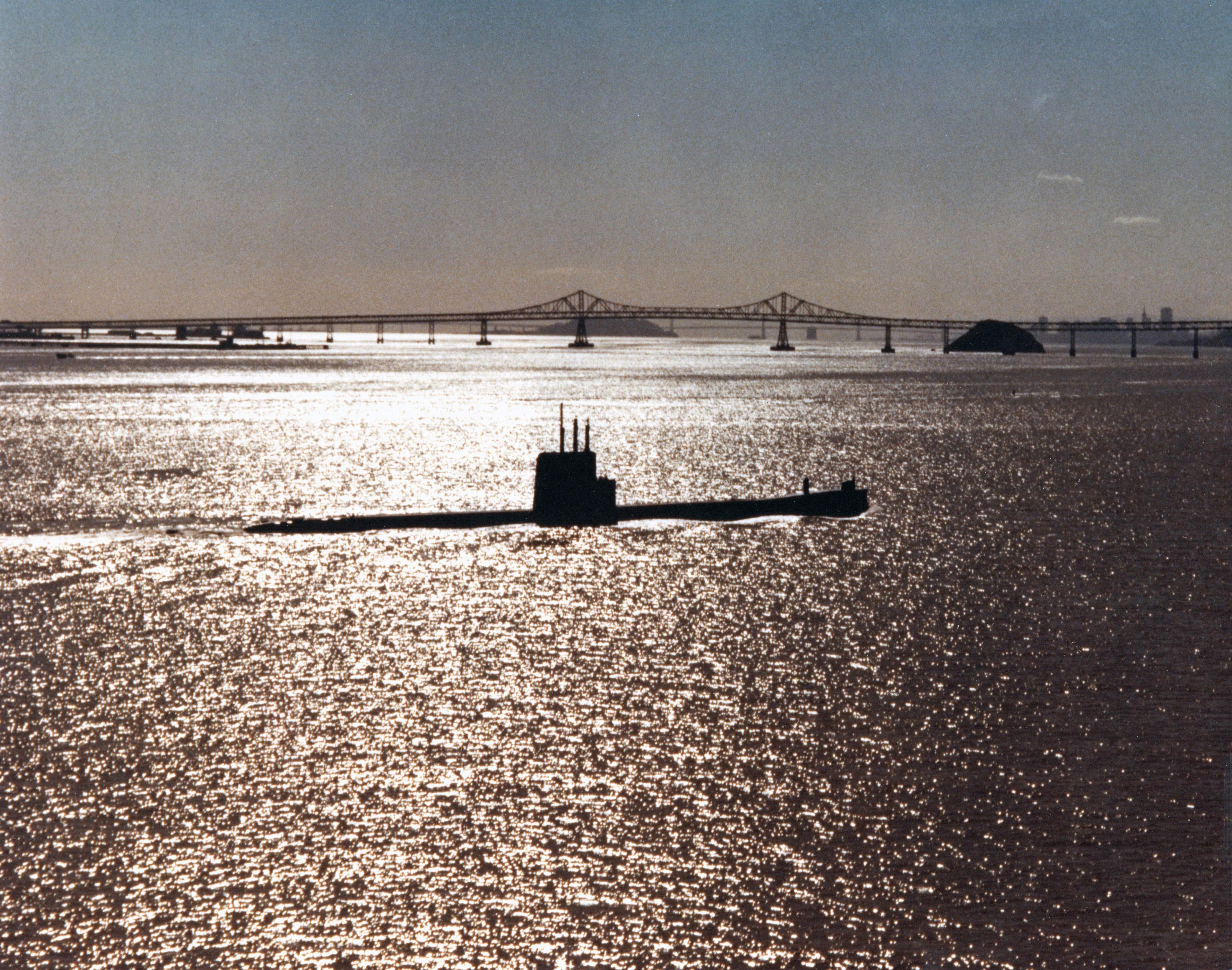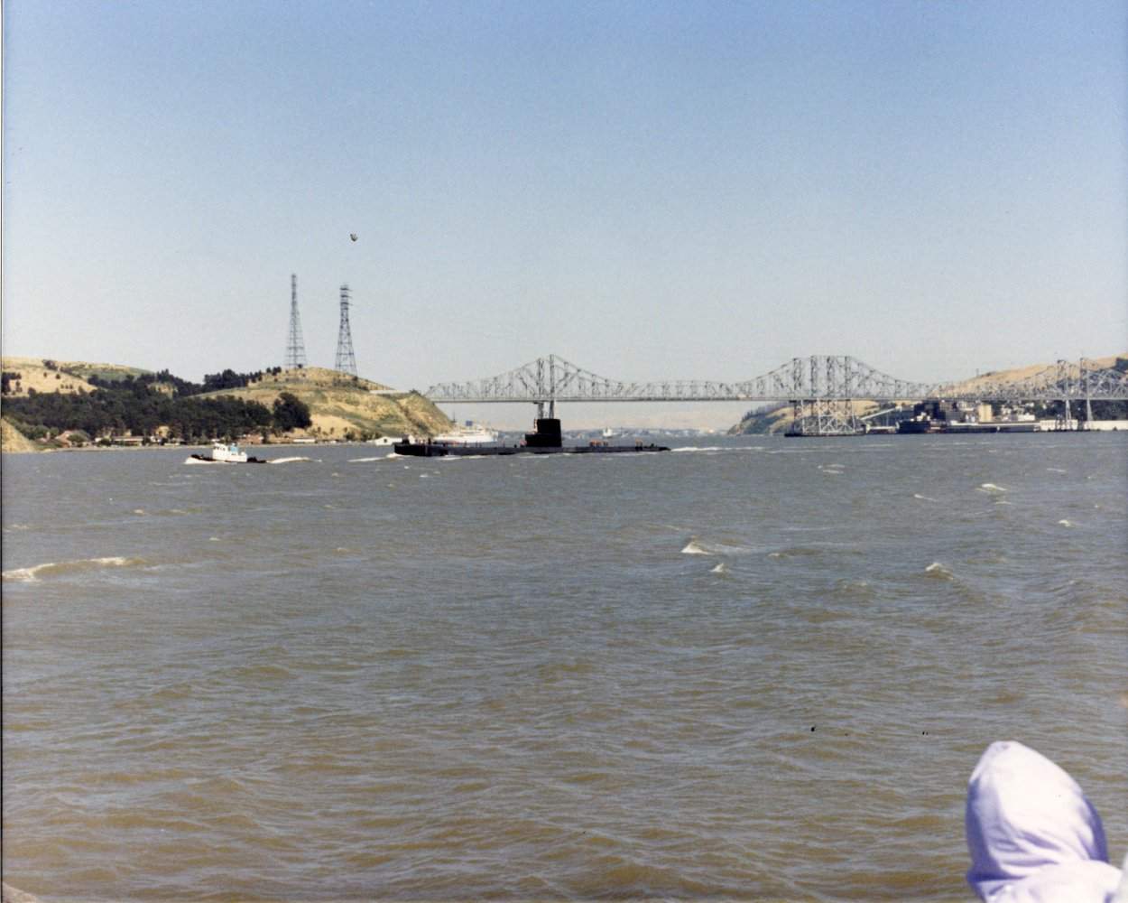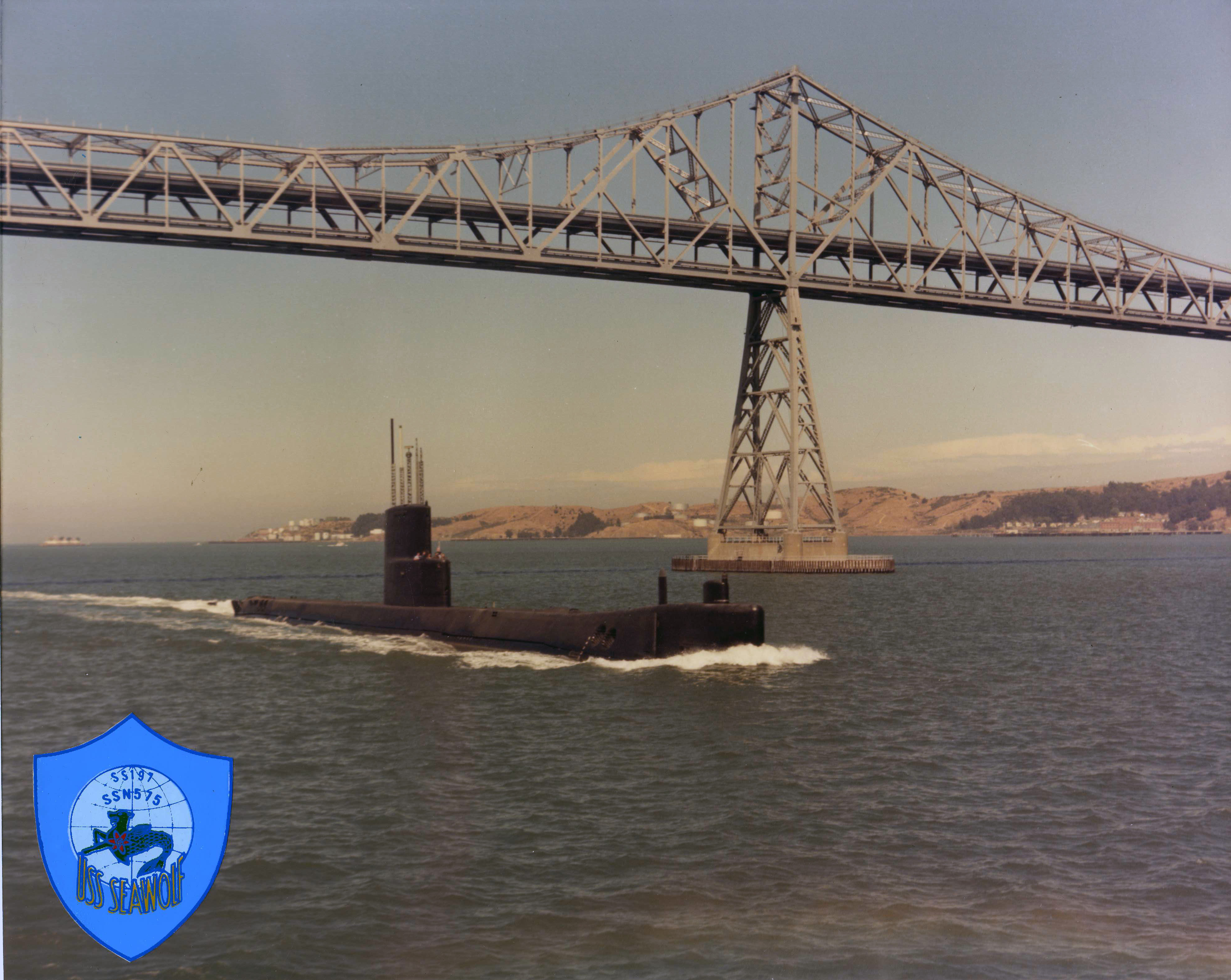 ![]() | 188k | The Seawolf (SSN-575) is seen passing under the San Rafael - Oakland Bay Bridge during the 1980's. | Photo courtesy of Jim Stats and submitted by Darryl L. Baker. | |