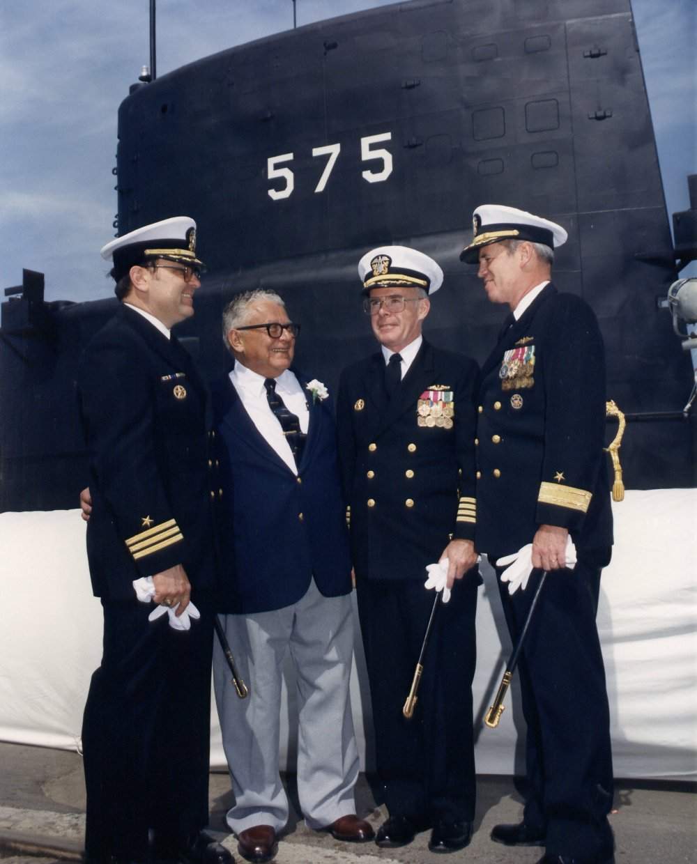578k | Admiral Rickover in, I believe, Seawolf's (SSN-575) upper reactor room. Not sure of the date, guessing sometime between first cruise and sea trials. | Photo courtesy of plankowner James L. Goodwin via his son, Kevin. | |