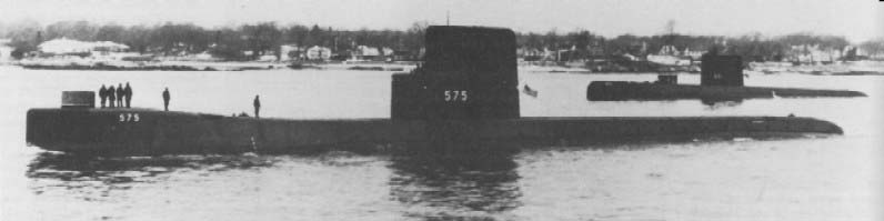 ![]() | 478k | Seawolf (SSN-575) returns to New London, Ct. after her 60 day submerged cruise on 6 October 1958. Note hull damage on her port side under the sail. | USN photo # 412X2-10-58 TH courtesy of the Vallejo Naval & Historical Museum via Darryl L. Baker. | |