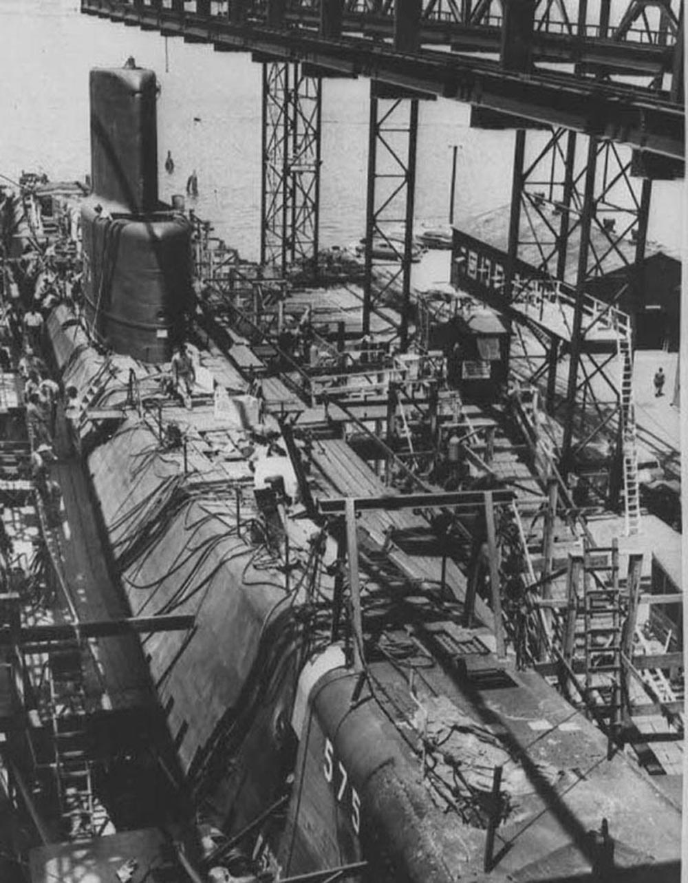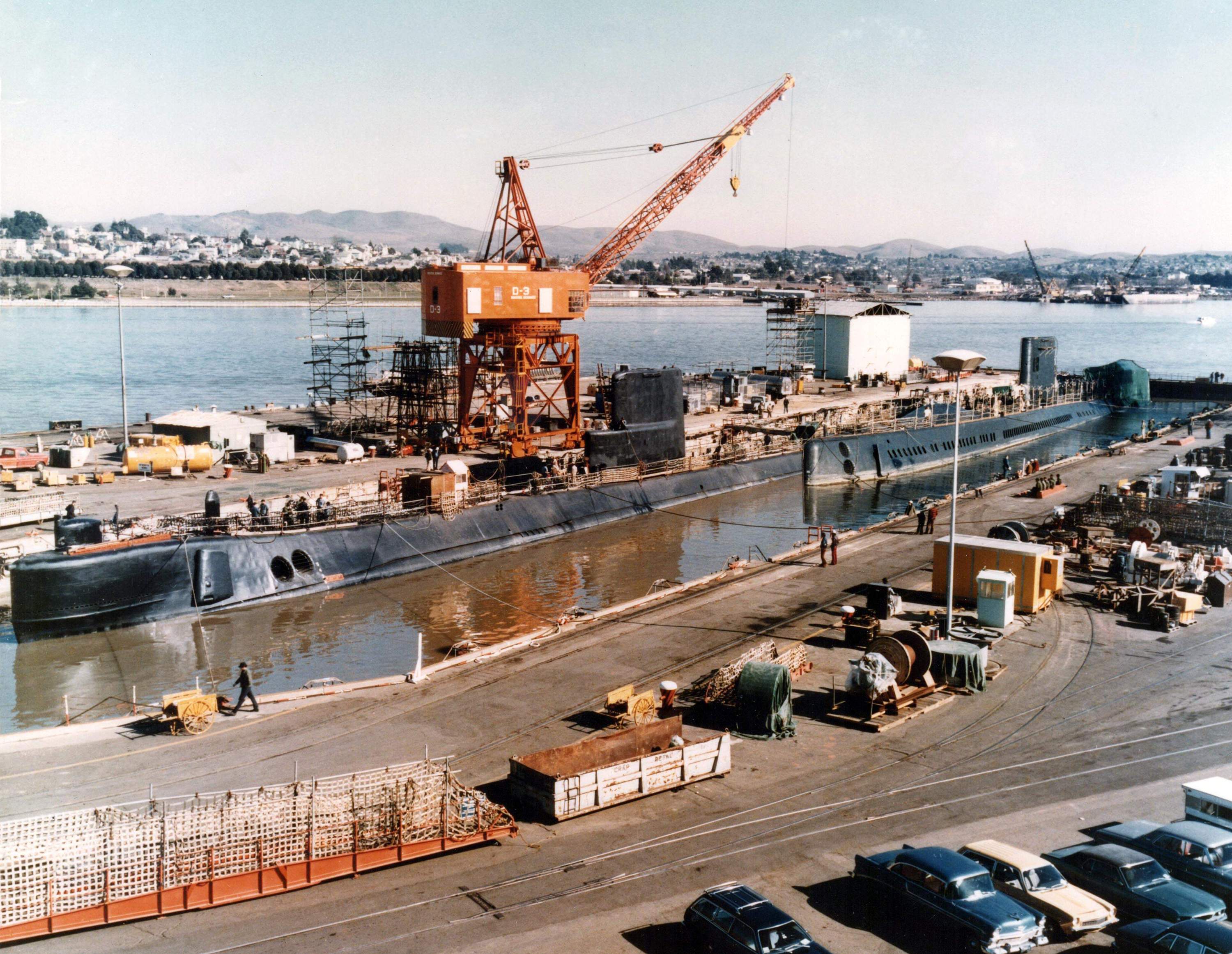 ![]() | 796k | The Seawolf (SSN-575) and Halibut (SSGN-587) in Mare Island's dry dock #3 together in January 1975. FYI - Seawolf is forward of Halibut. | USN photo courtesy of Vallejo Naval and Museum via Darryl L. Baker. | |