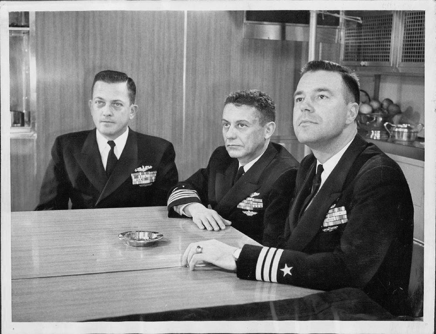 ![]() | 538k | Sub Skippers - The Navy's three atomic sub skippers of the Nautilus (SSN-571), Seawolf (SSN-575) & Skate (SSN-578).....12 April 1959. | USN photo courtesy of Tommy Trampp. | |